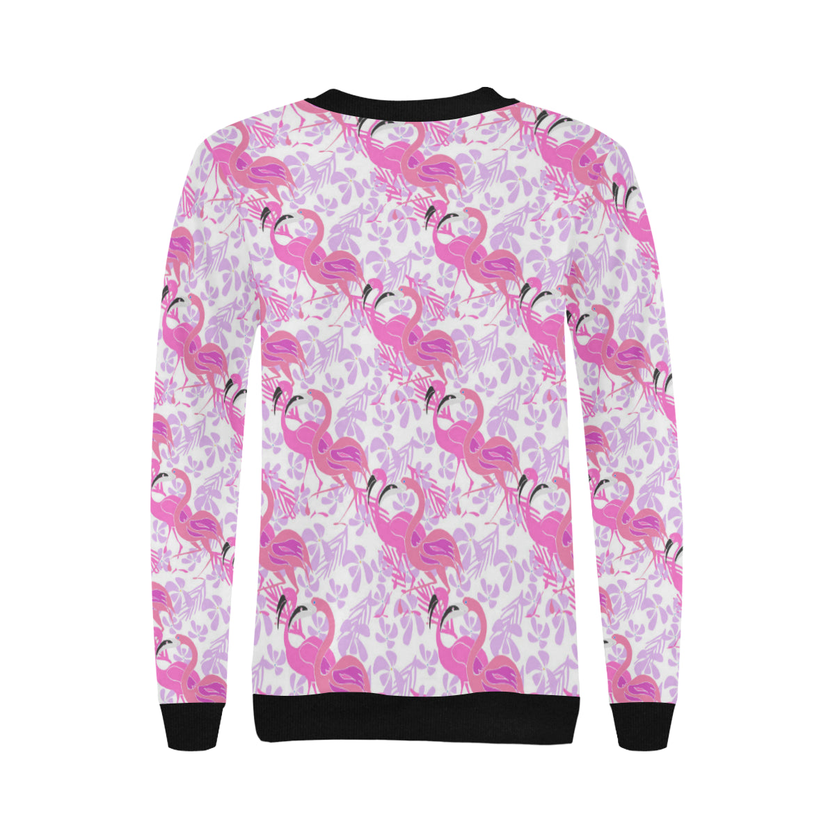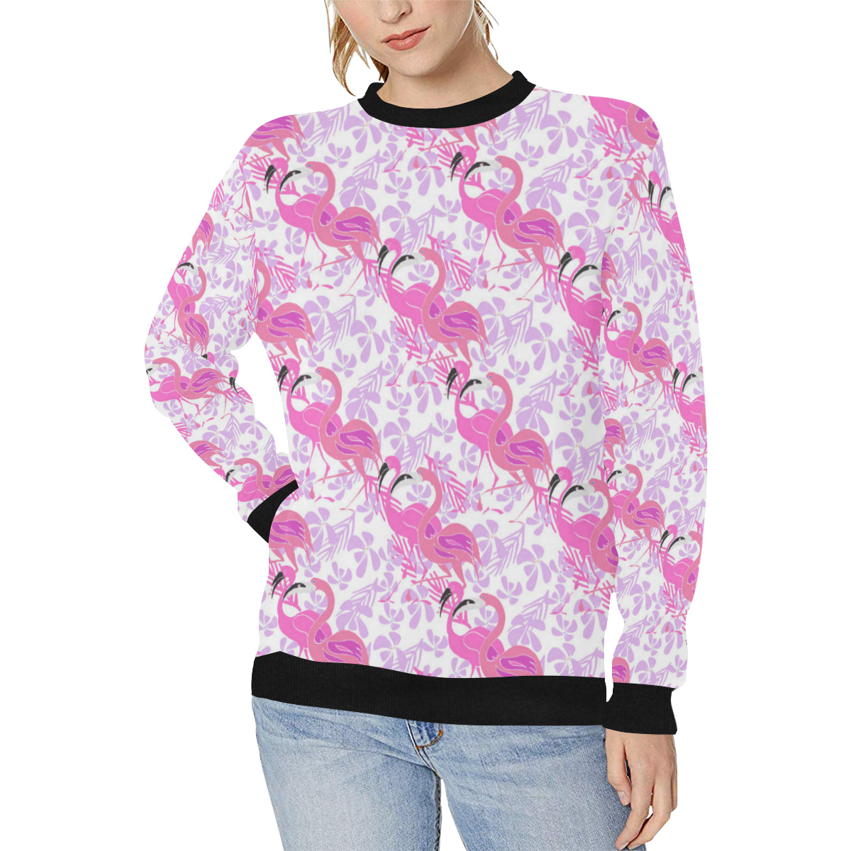 Pink flamingo flower pattern Women's Crew Neck Sweatshirt