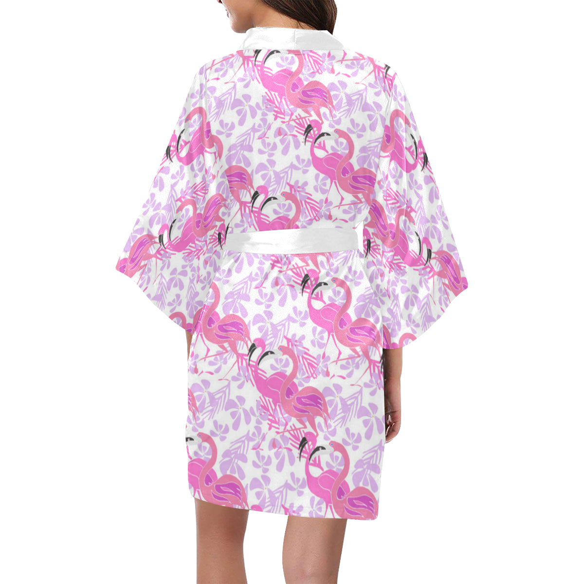 Pink flamingo flower pattern Women's Short Kimono Robe