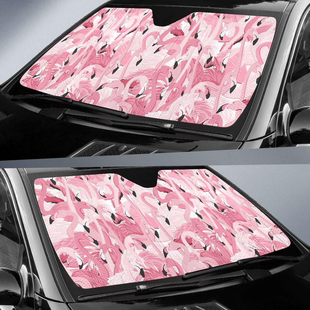 Pink flamingos pattern background Car Sun Shade is a uniqued design and limited item. It made to order, hand printed, and sewn with love in our factory.