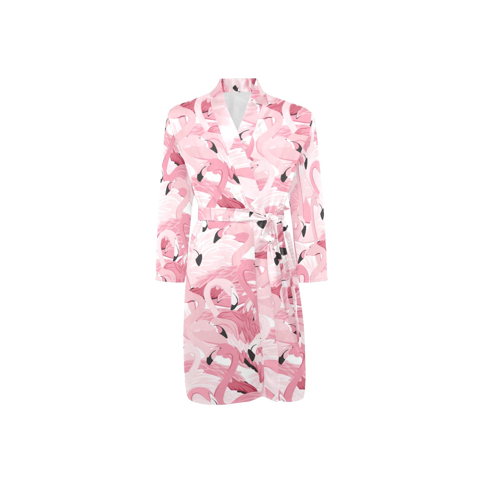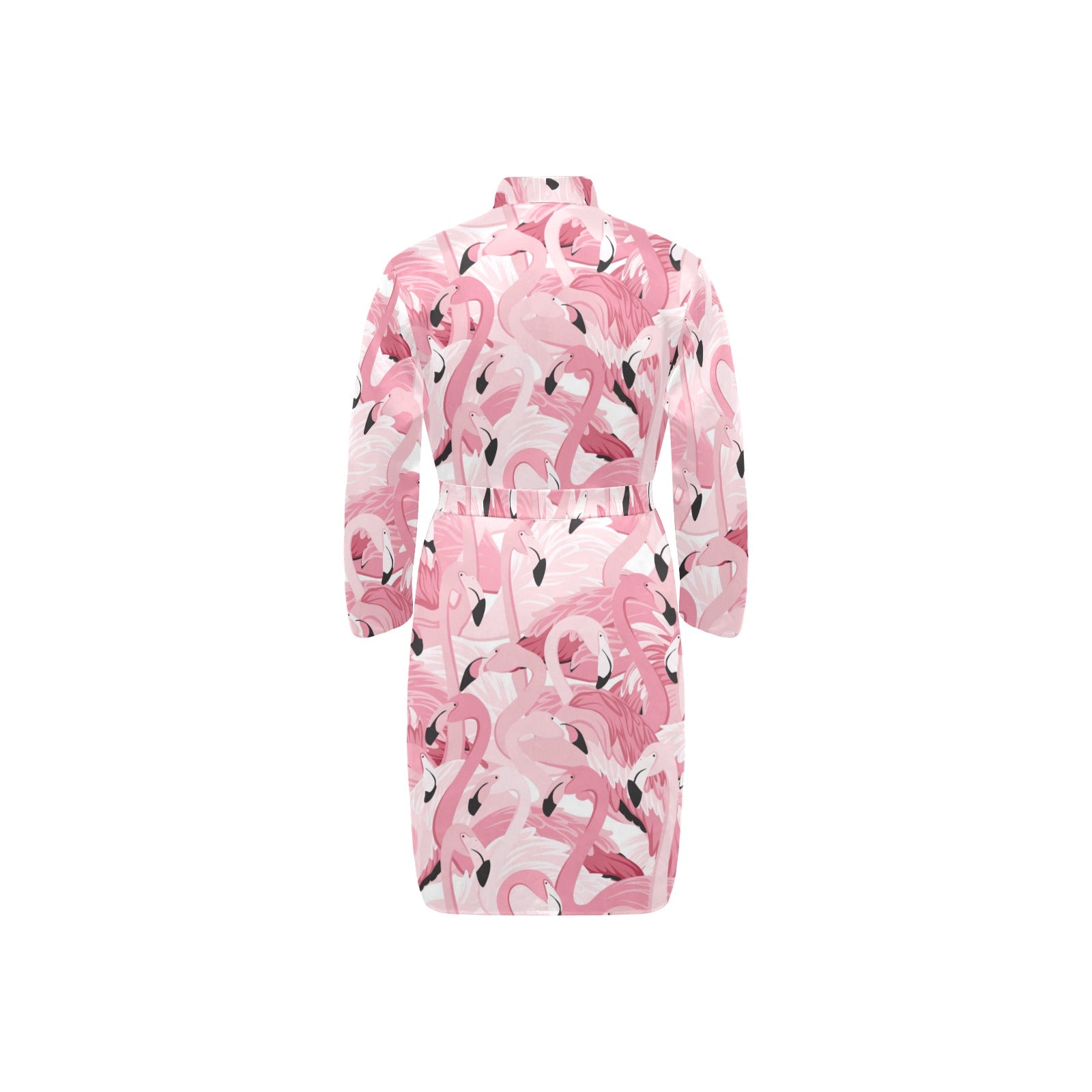 Pink flamingos pattern background Men's Long Sleeve Belted Night Robe