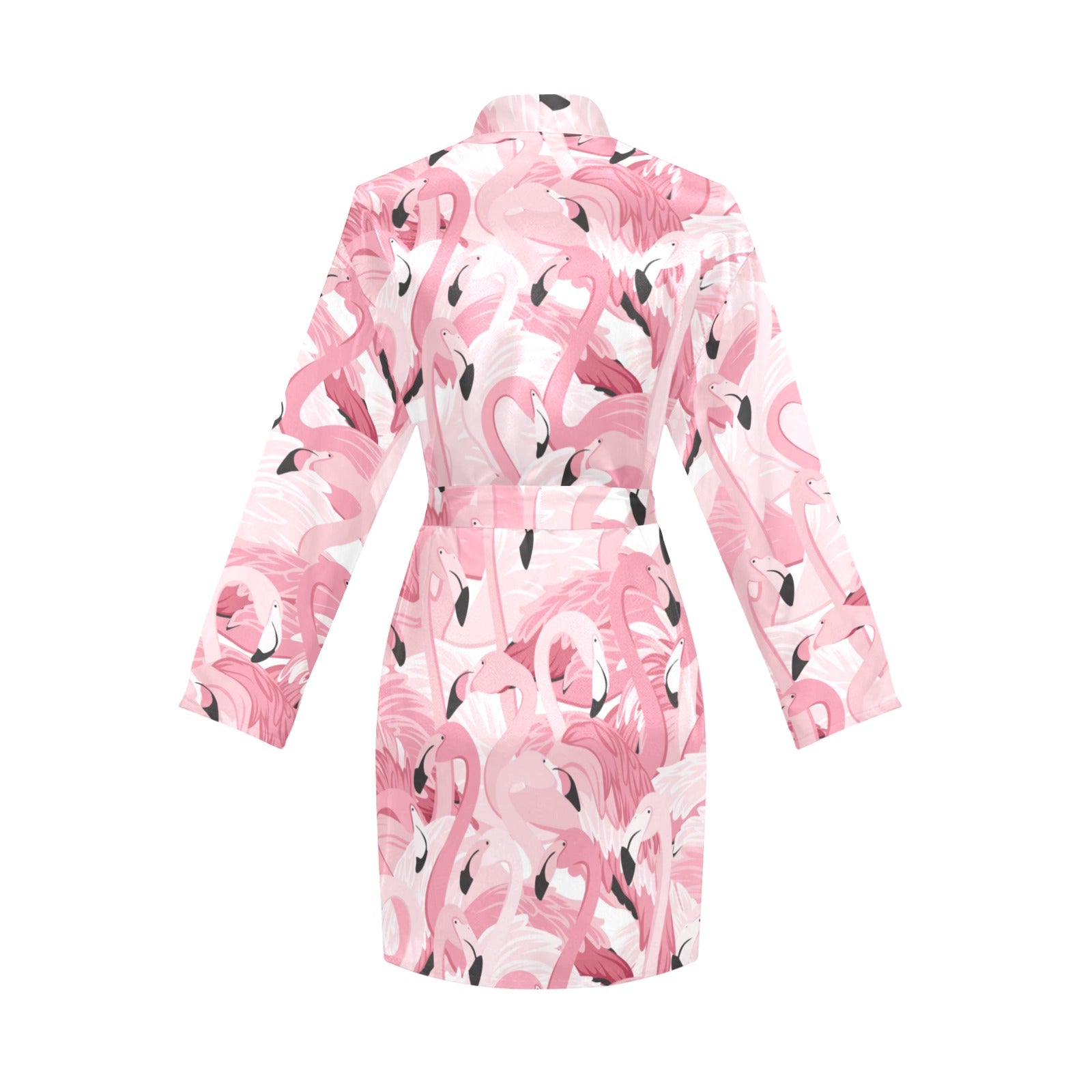 Pink flamingos pattern background Women's Long Sleeve Belted Night Robe