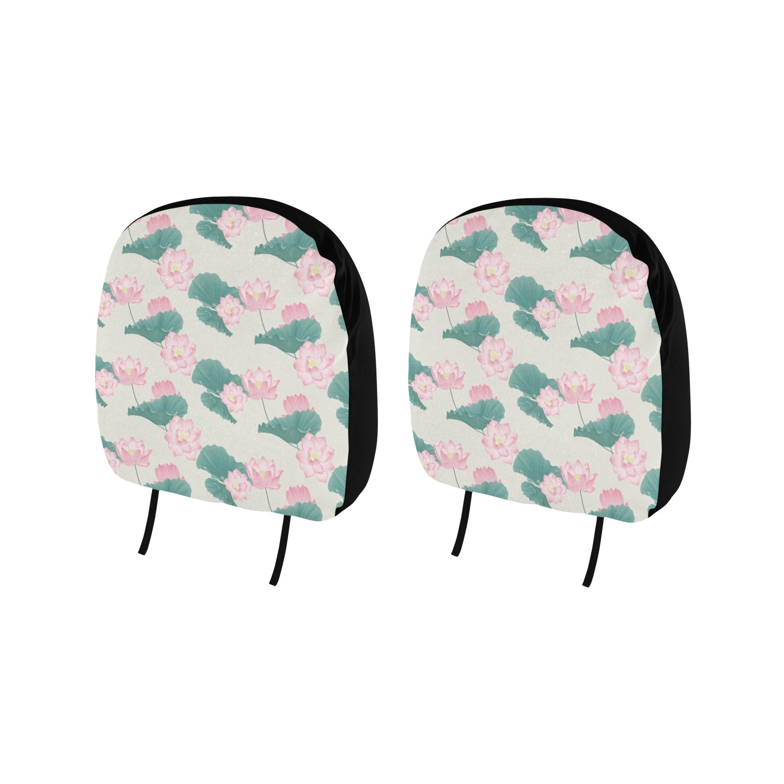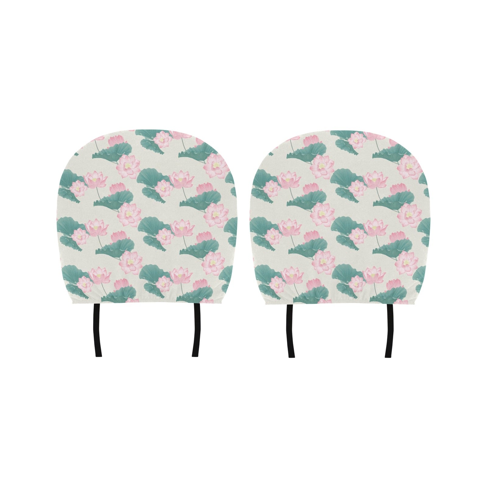 Pink lotus waterlily leaves pattern Car Headrest Cover