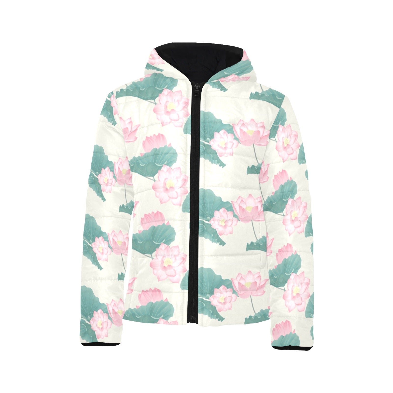 Pink lotus waterlily leaves pattern Kids' Boys' Girls' Padded Hooded Jacket