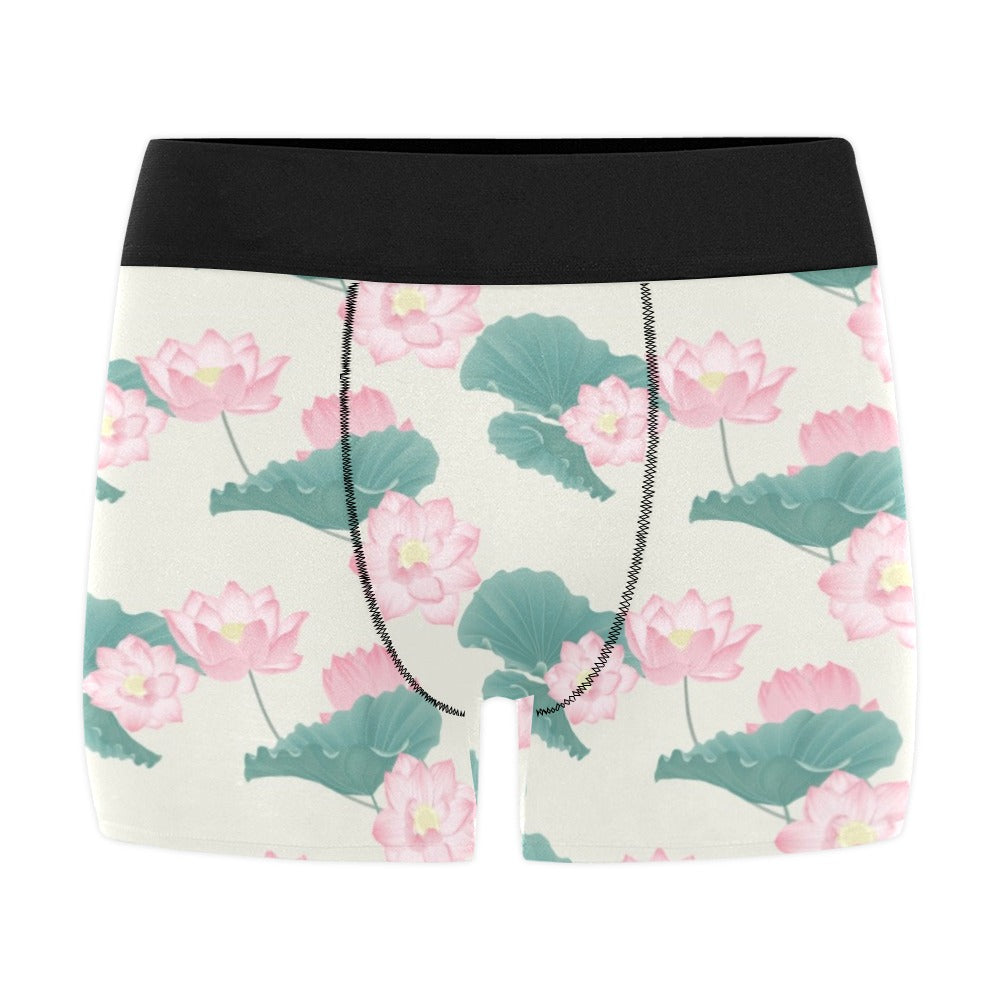 Pink lotus waterlily leaves pattern Men's All Over Print Boxer Briefs Men's Underwear