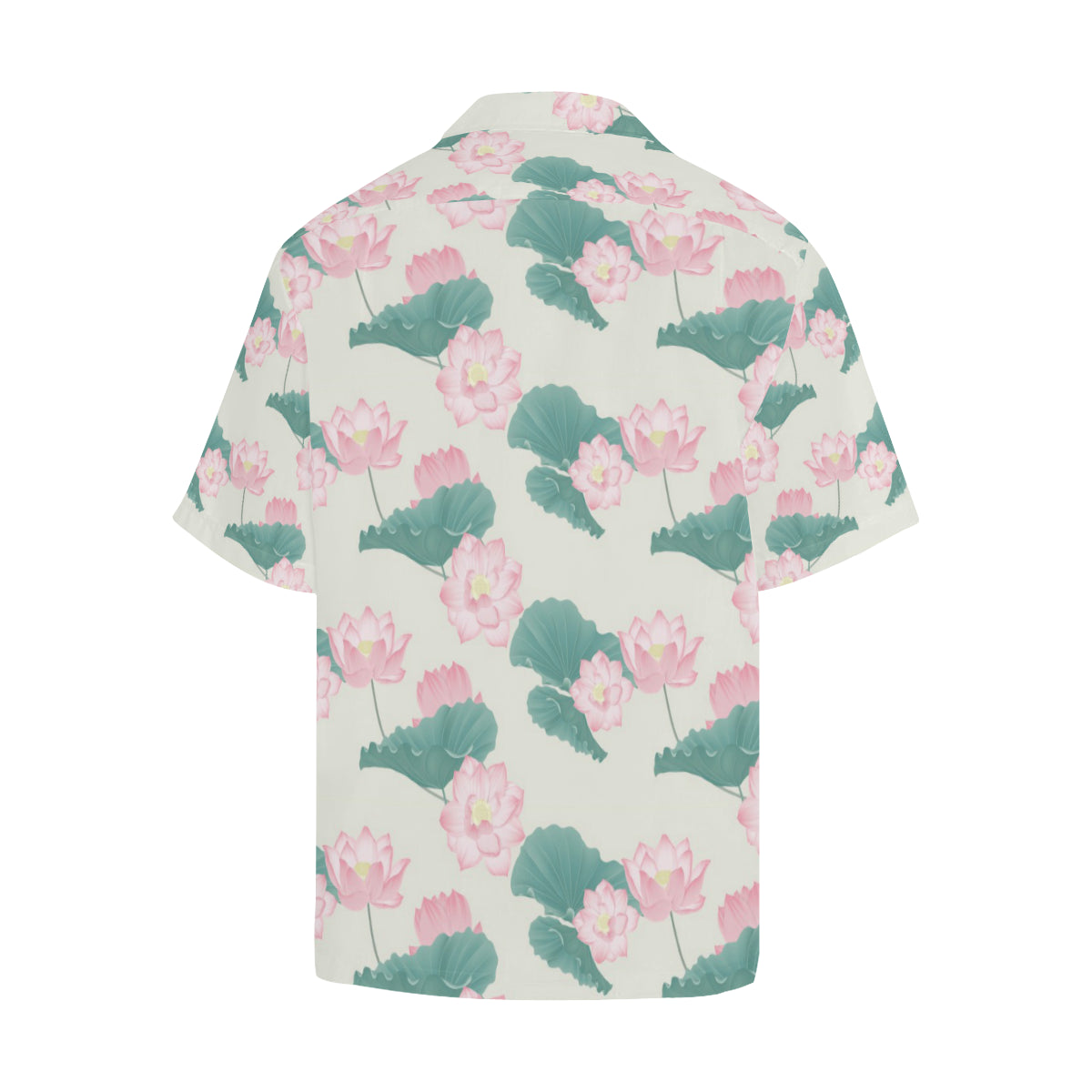 Pink lotus waterlily leaves pattern Men's All Over Print Hawaiian Shirt is a uniqued design and limited item. It made to order, hand printed, and sewn with love in our factory.