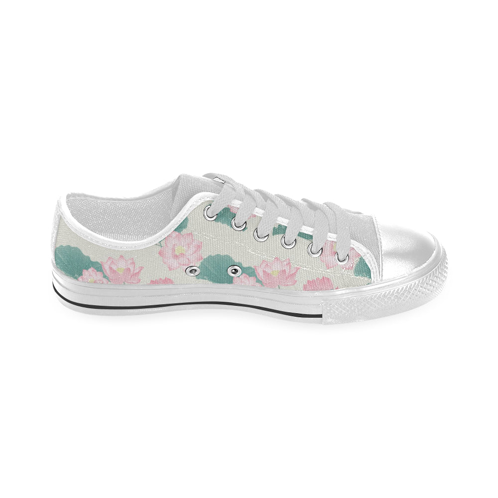 Pink lotus waterlily leaves pattern Men's Low Top Canvas Shoes White