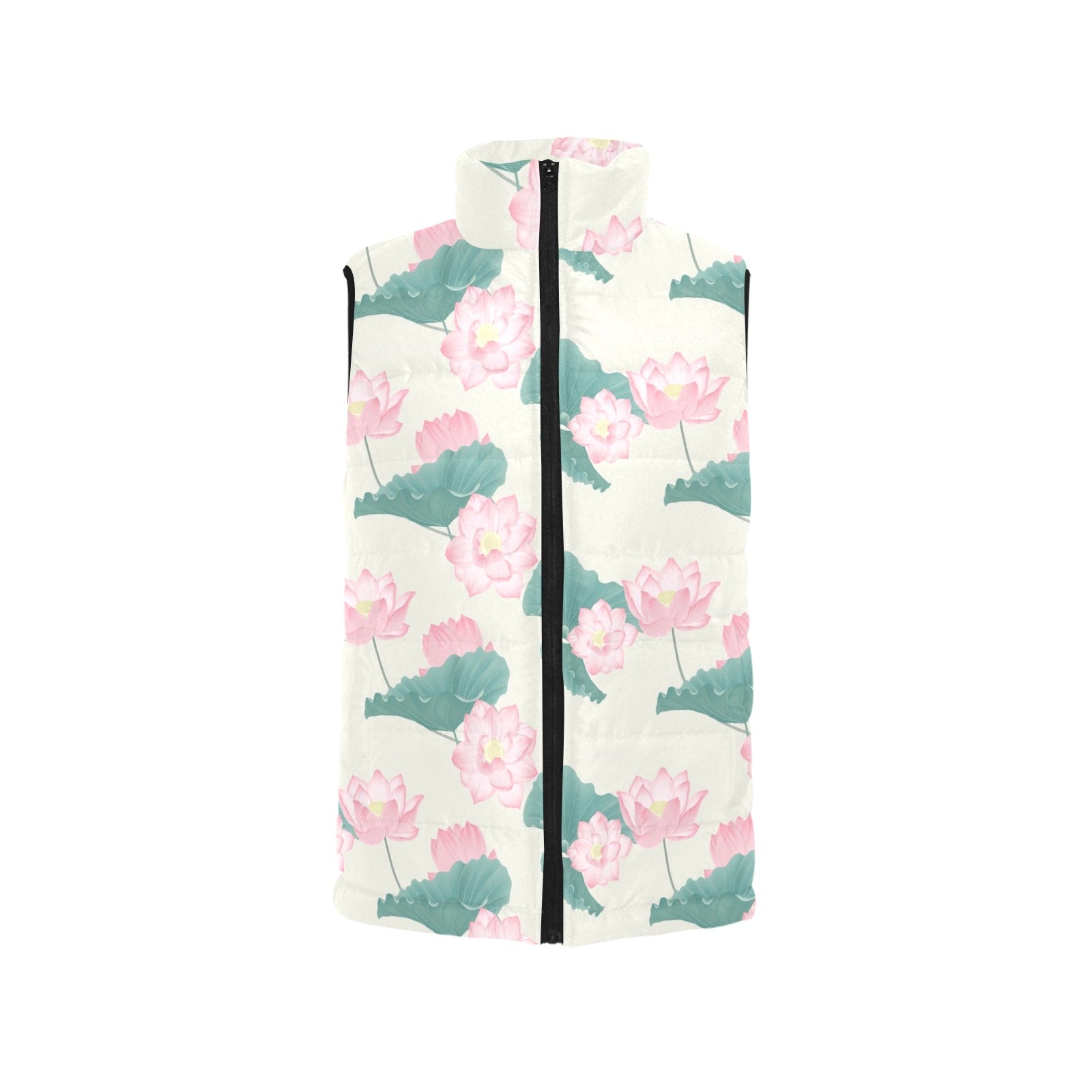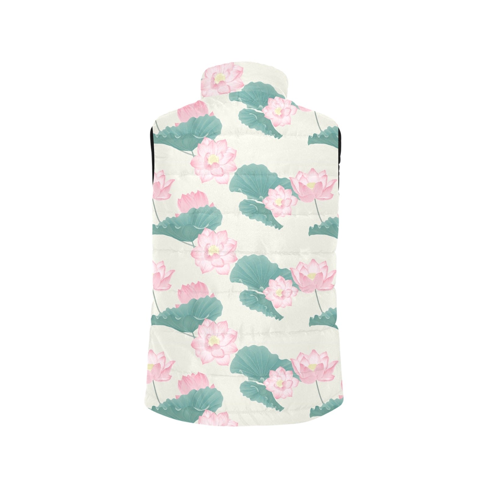 Pink lotus waterlily leaves pattern Men's Padded Vest
