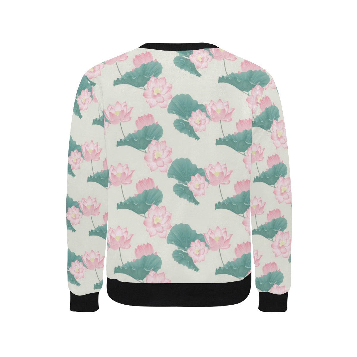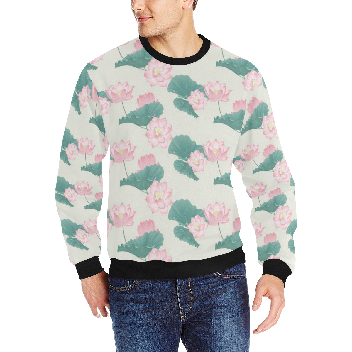 Pink lotus waterlily leaves pattern Men's Crew Neck Sweatshirt