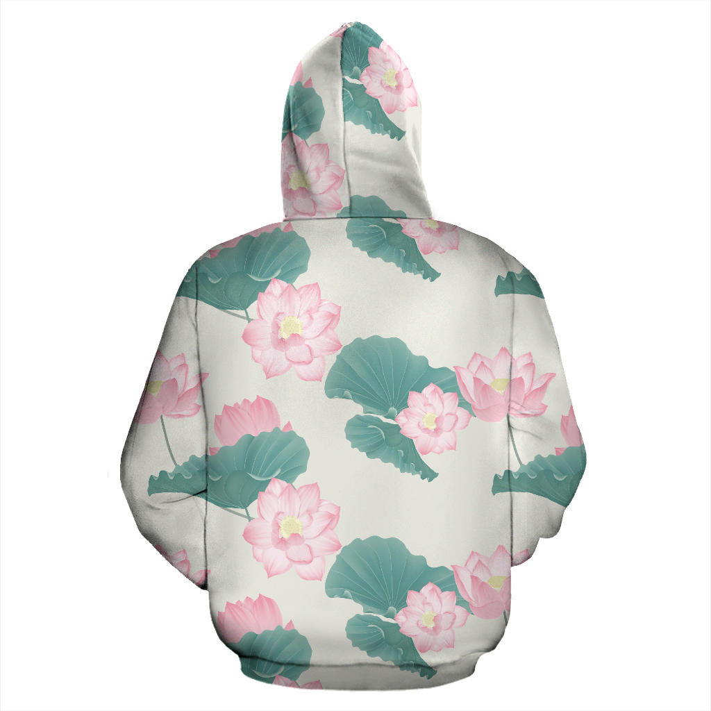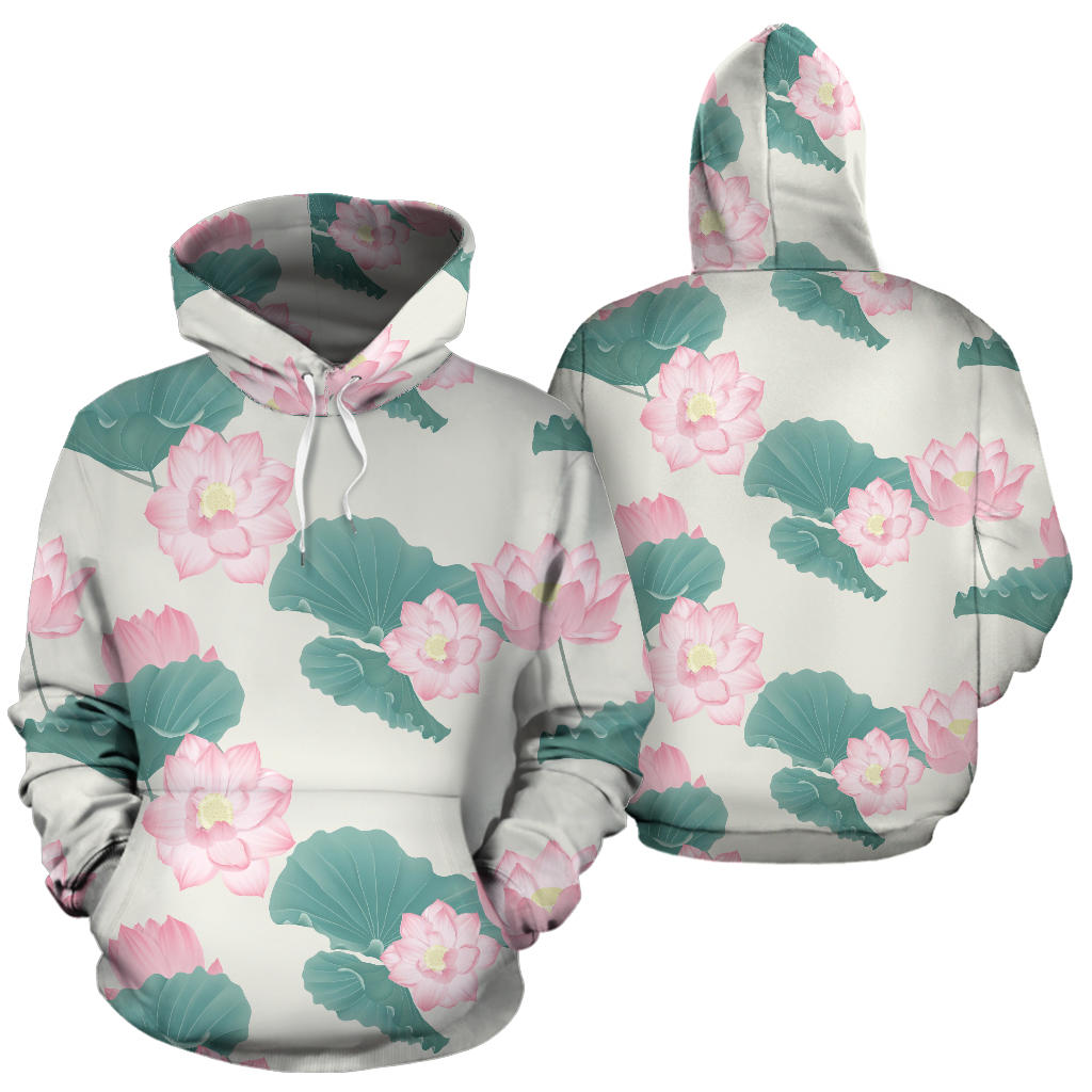 Pink Lotus Waterlily Leaves Pattern Men Women Pullover Hoodie