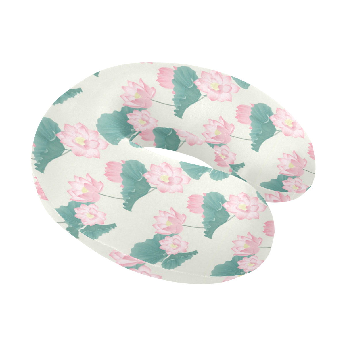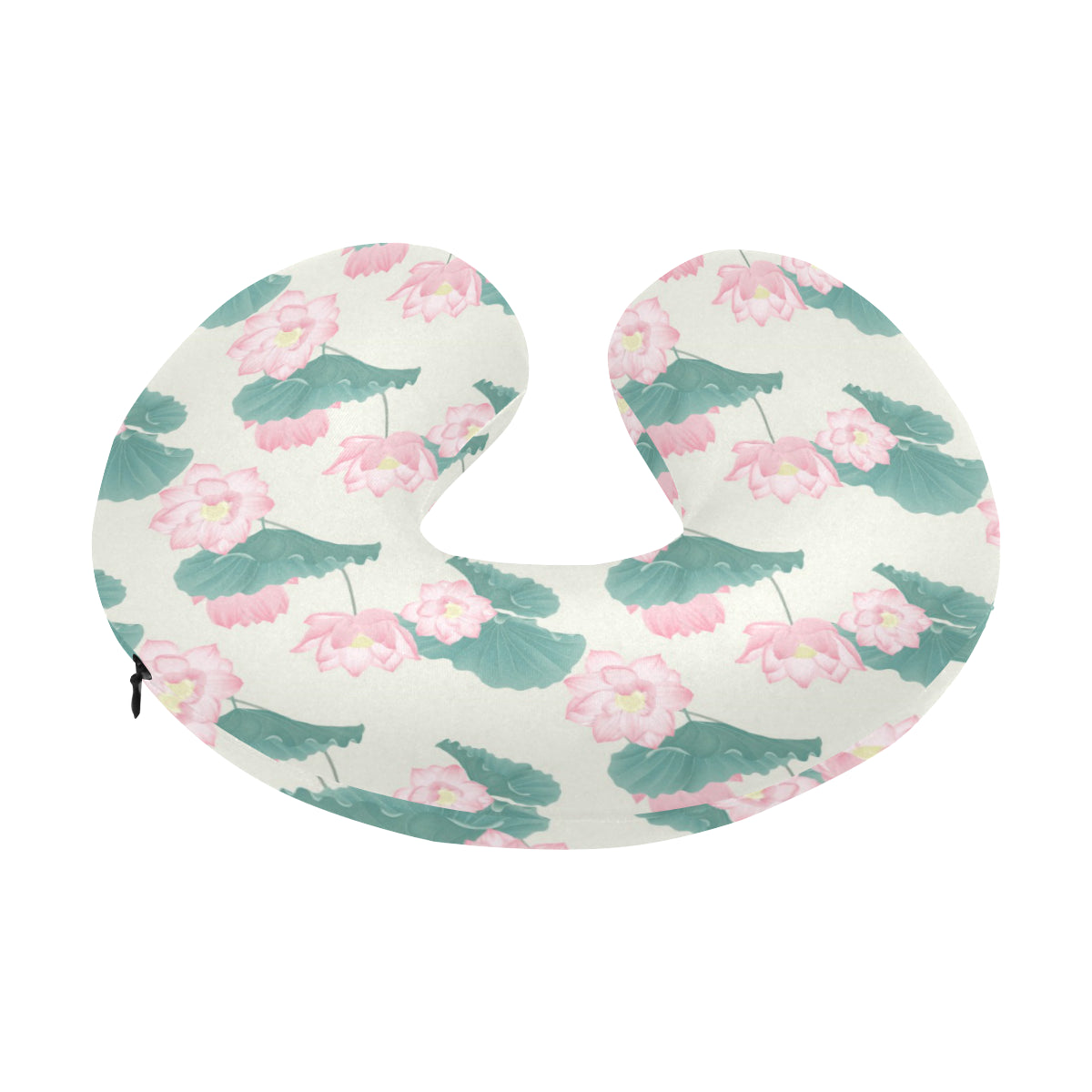 Pink lotus waterlily leaves pattern U-Shaped Travel Neck Pillow