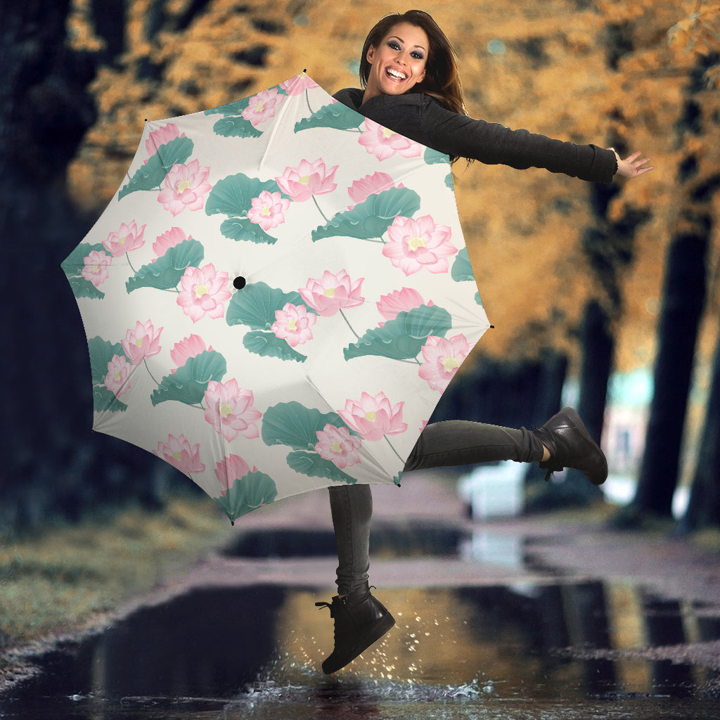 Pink Lotus Waterlily Leaves Pattern Umbrella