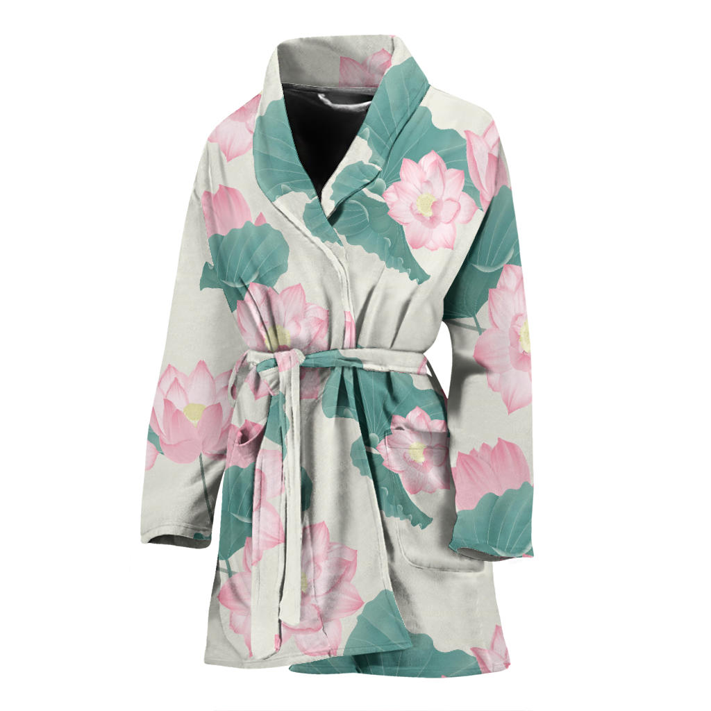 Pink Lotus Waterlily Leaves Pattern Women'S Bathrobe