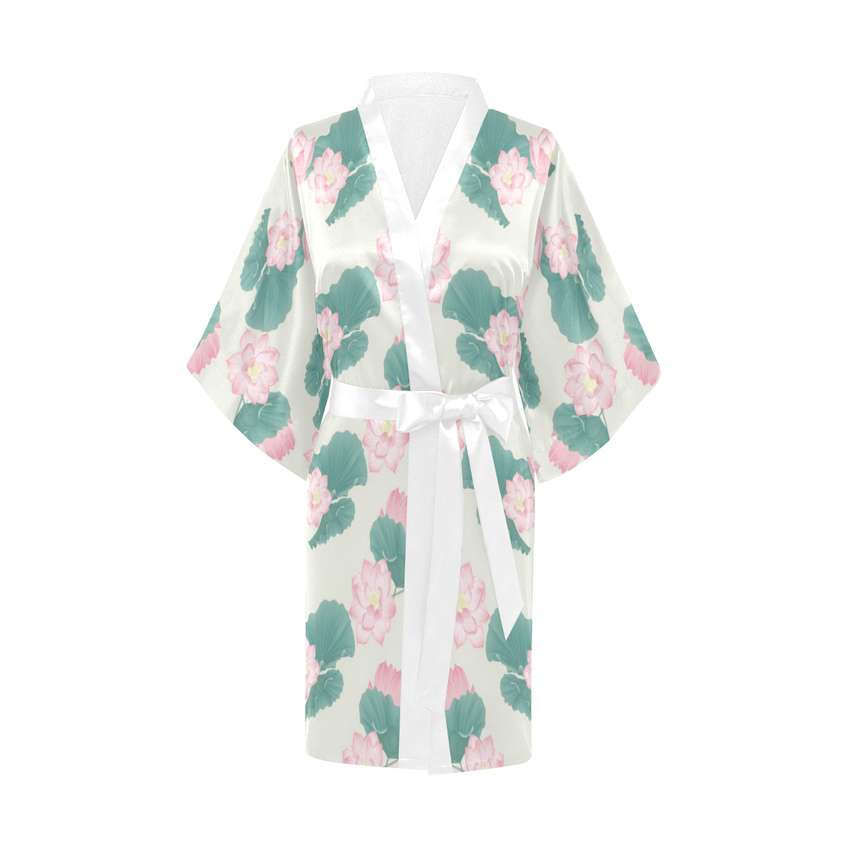 Pink lotus waterlily leaves pattern Women's Short Kimono Robe is a uniqued design and limited item. It made to order, hand printed, and sewn with love in our factory.
