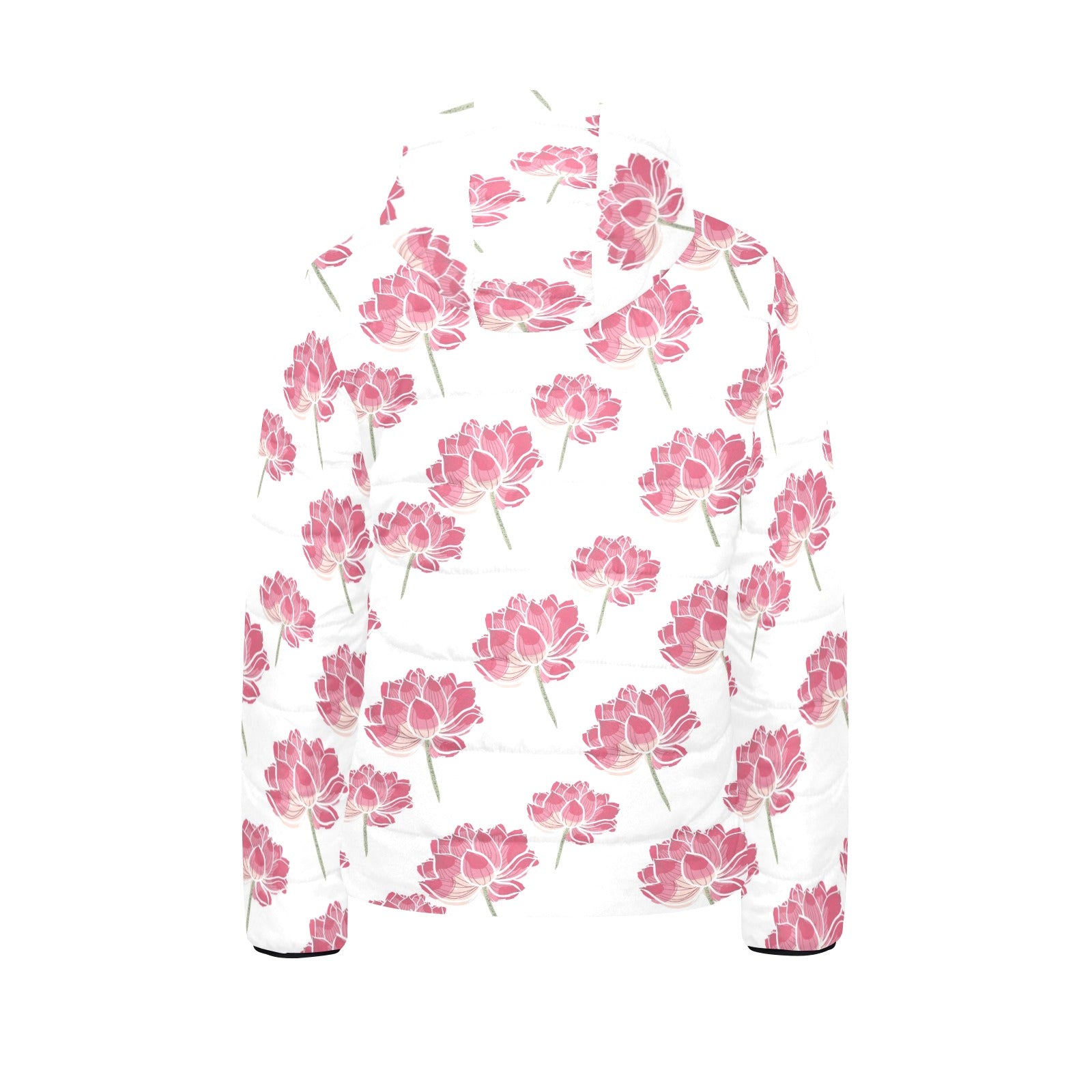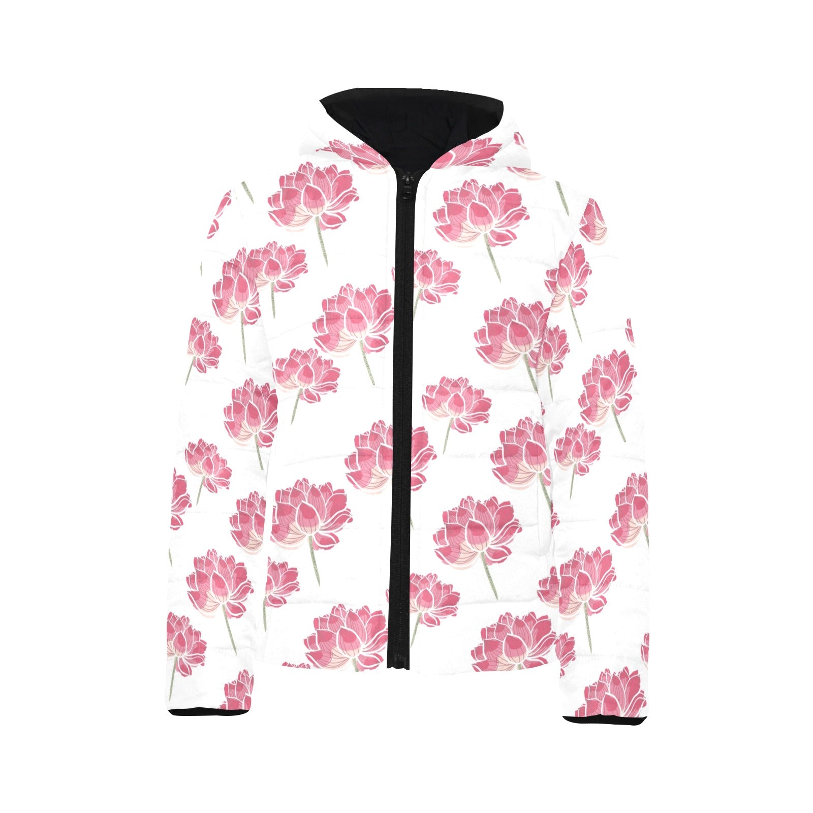 Pink lotus waterlily pattern Kids' Boys' Girls' Padded Hooded Jacket