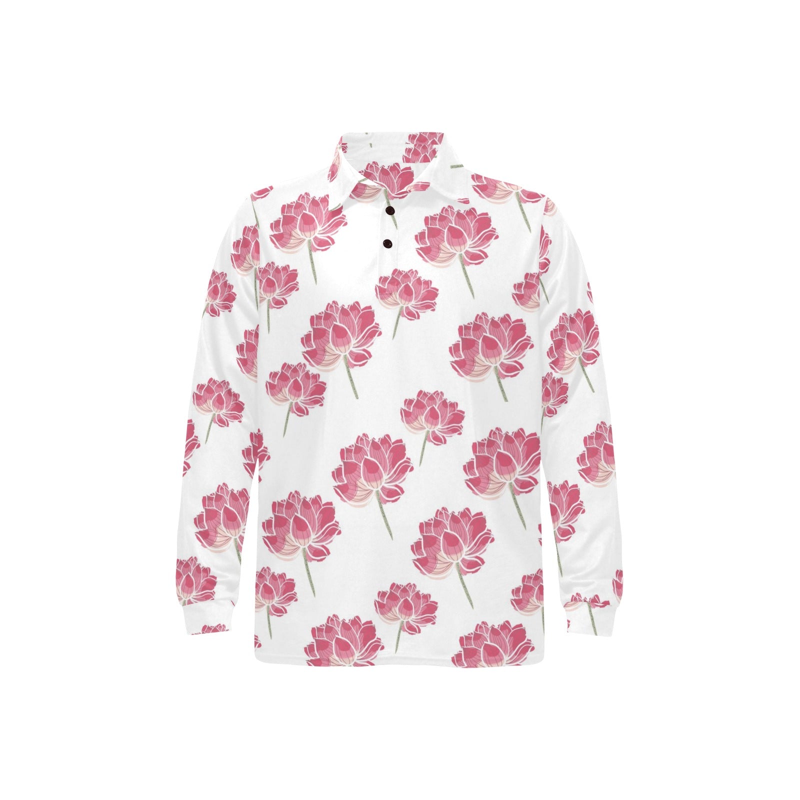 Pink lotus waterlily pattern Men's Long Sleeve Polo Shirt