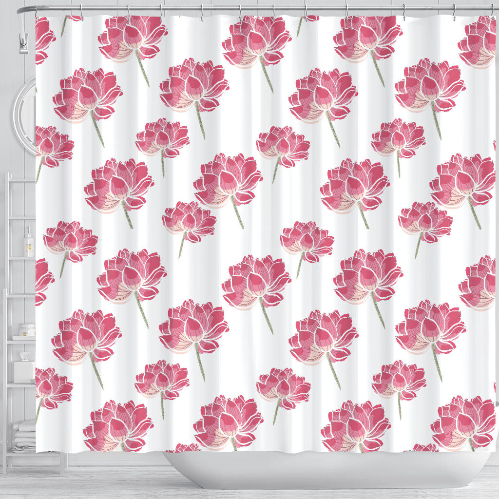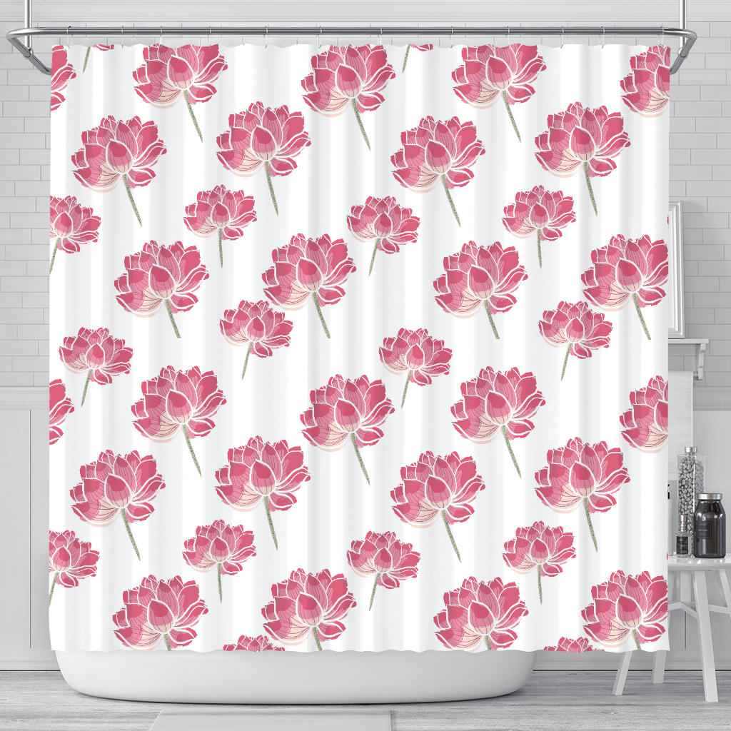 Pink Lotus Waterlily Pattern Shower Curtain Fulfilled In US