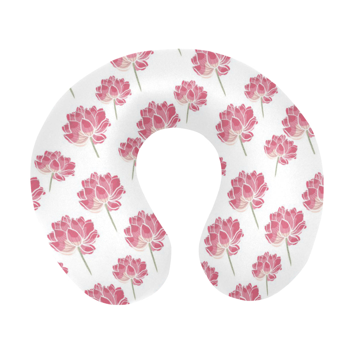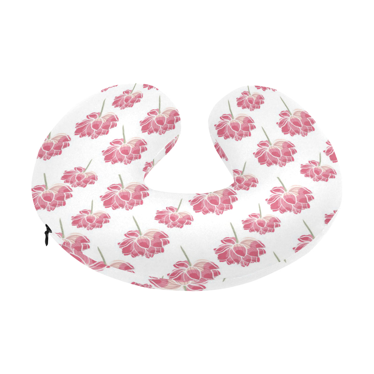 Pink lotus waterlily pattern U-Shaped Travel Neck Pillow