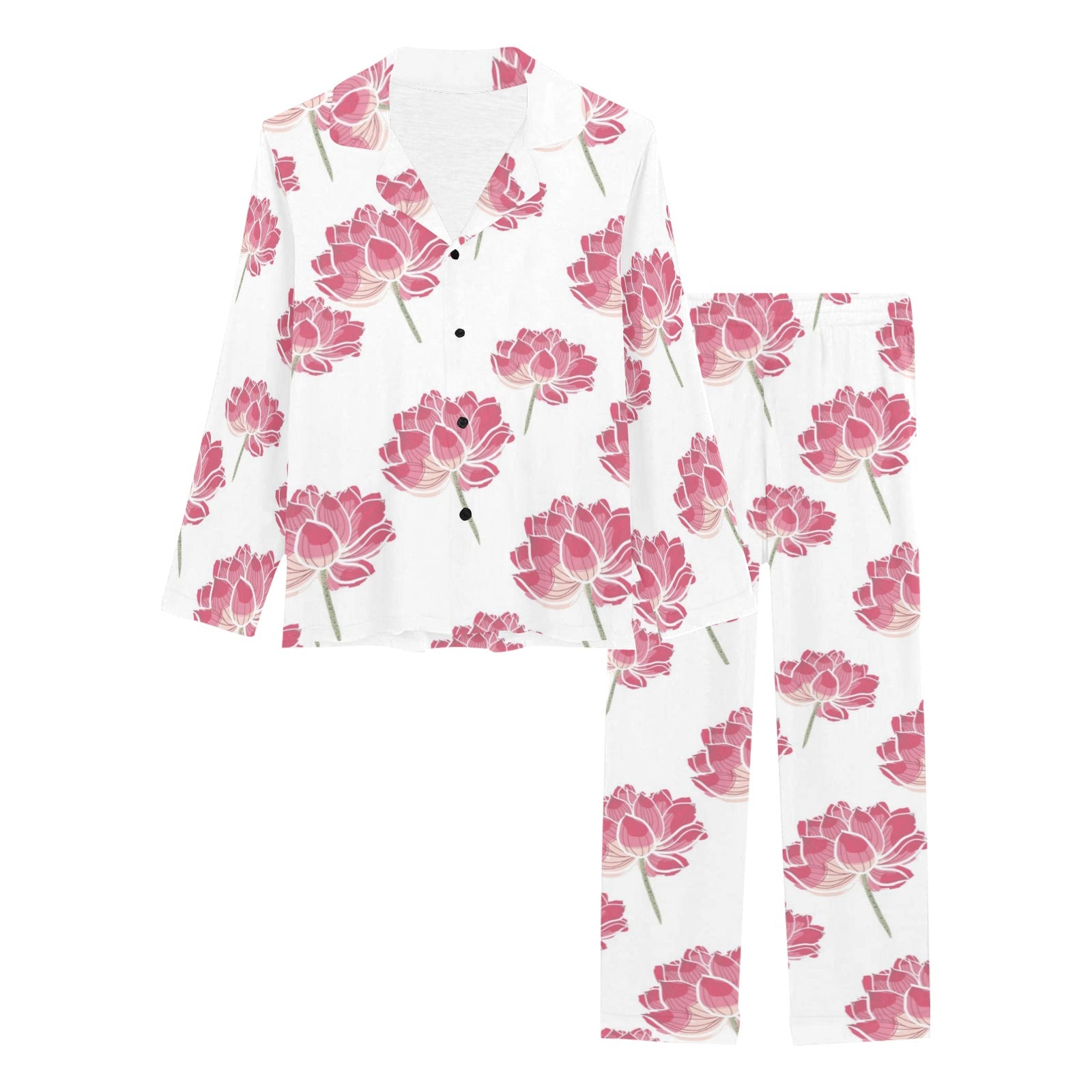Pink lotus waterlily pattern Women's Long Pajama Set