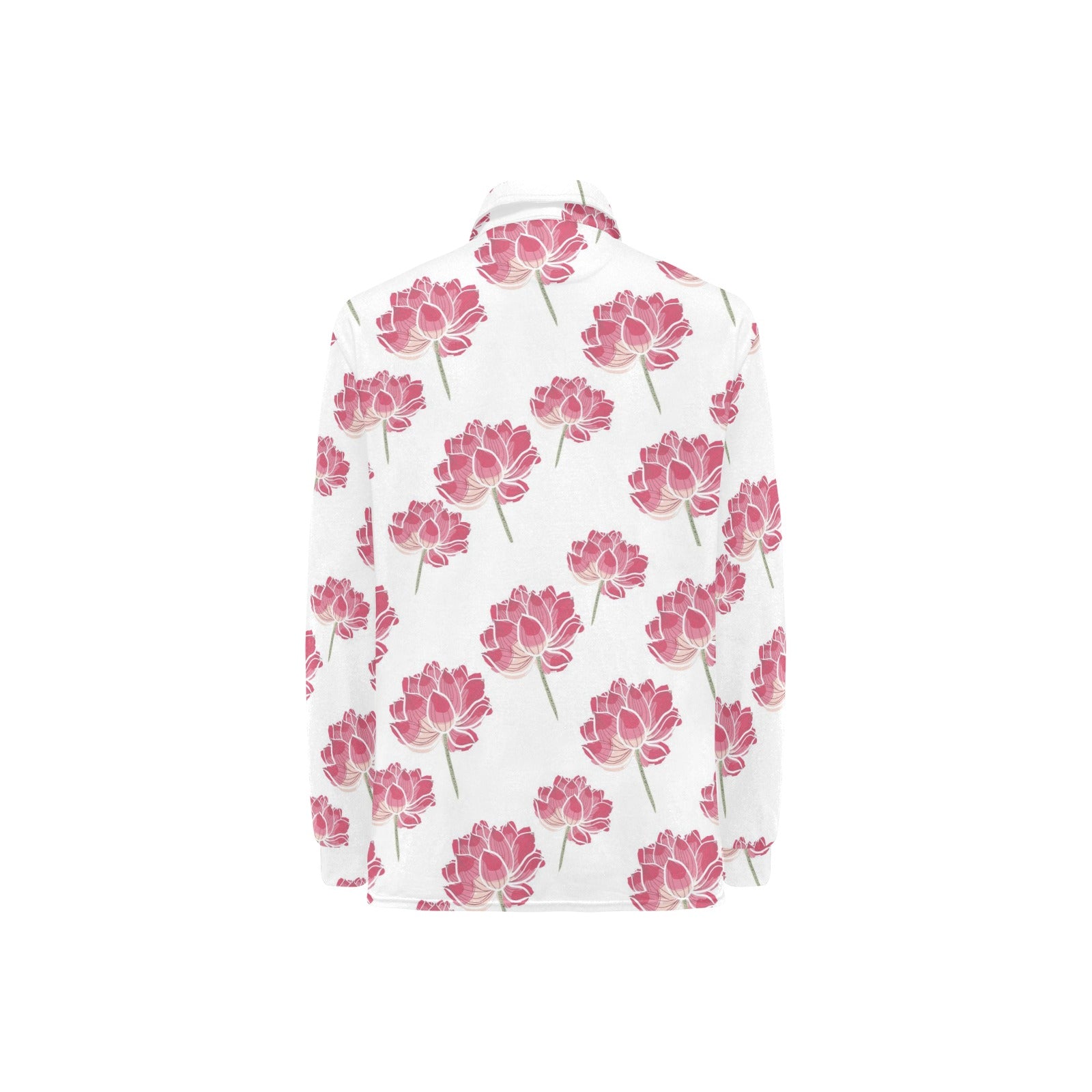 Pink lotus waterlily pattern Women's Long Sleeve Polo Shirt