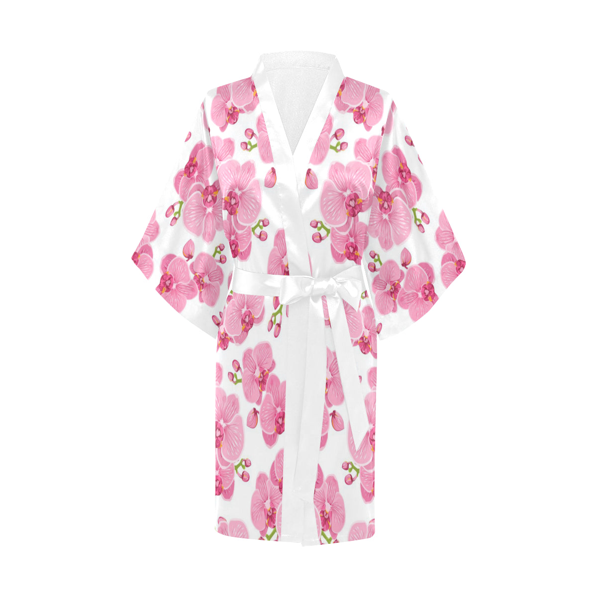 pink purple orchid pattern background Women's Short Kimono Robe is a uniqued design and limited item. It made to order, hand printed, and sewn with love in our factory.