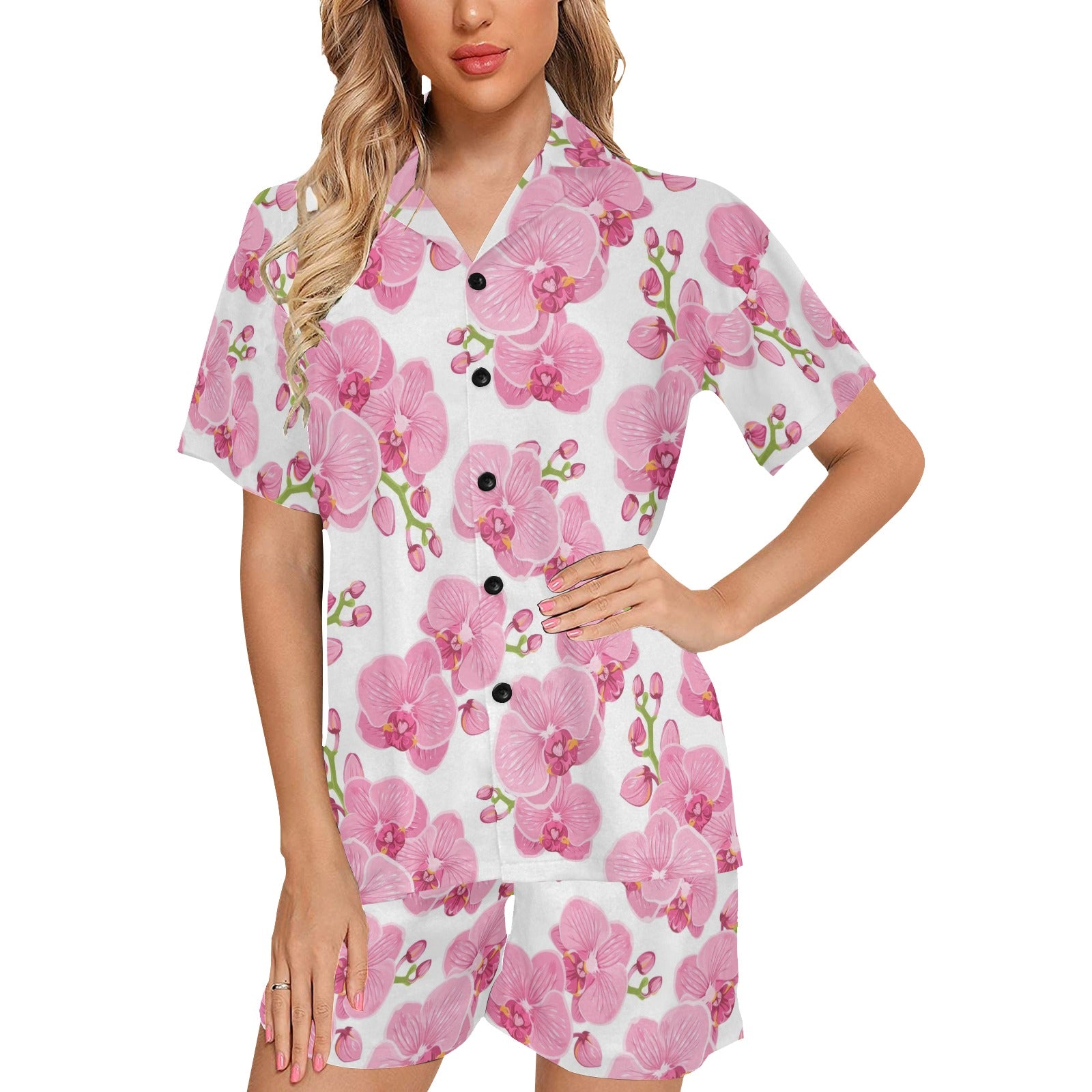 pink purple orchid pattern background Women's V-Neck Short Pajama Set
