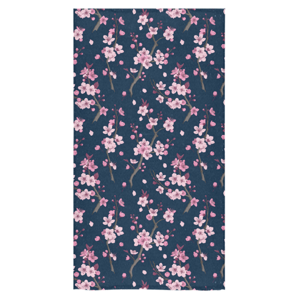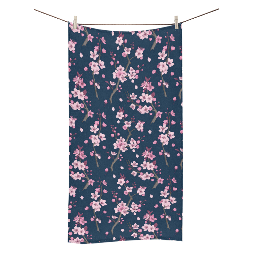 Pink sakura cherry blossom blue background Bath Towel 30"x56" is a uniqued design and limited item. It made to order, hand printed, and sewn with love in our factory.