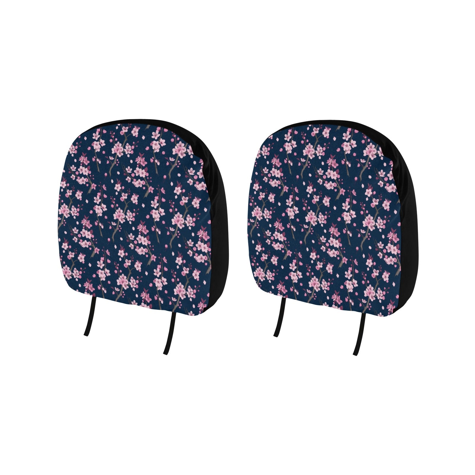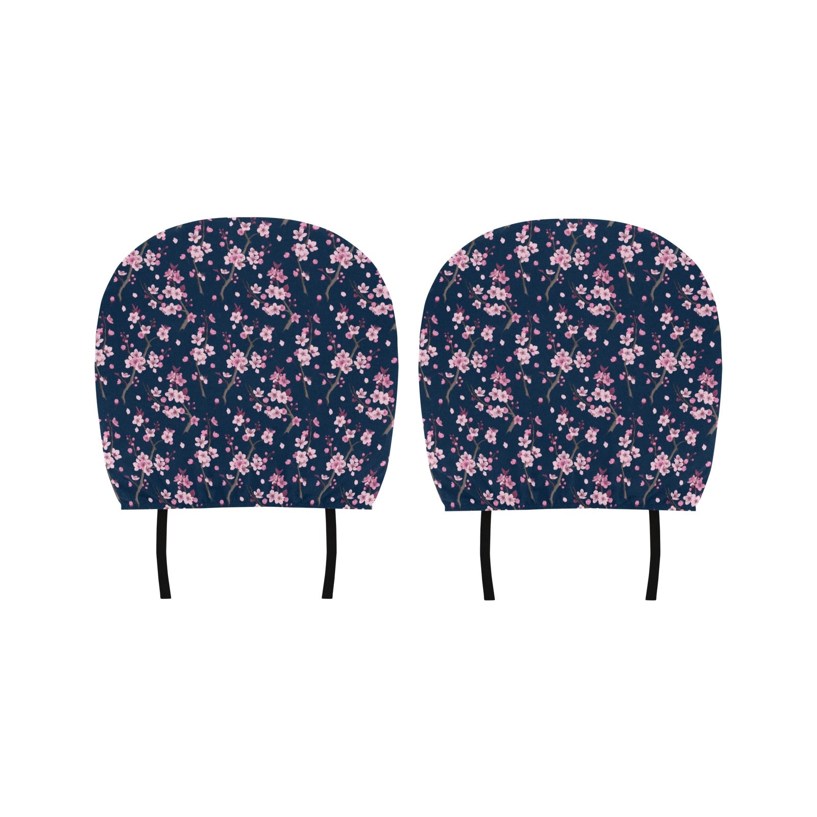 Pink sakura cherry blossom blue background Car Headrest Cover