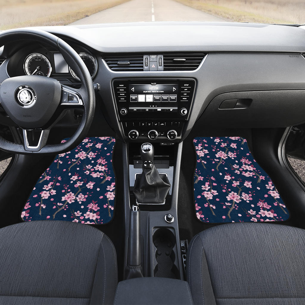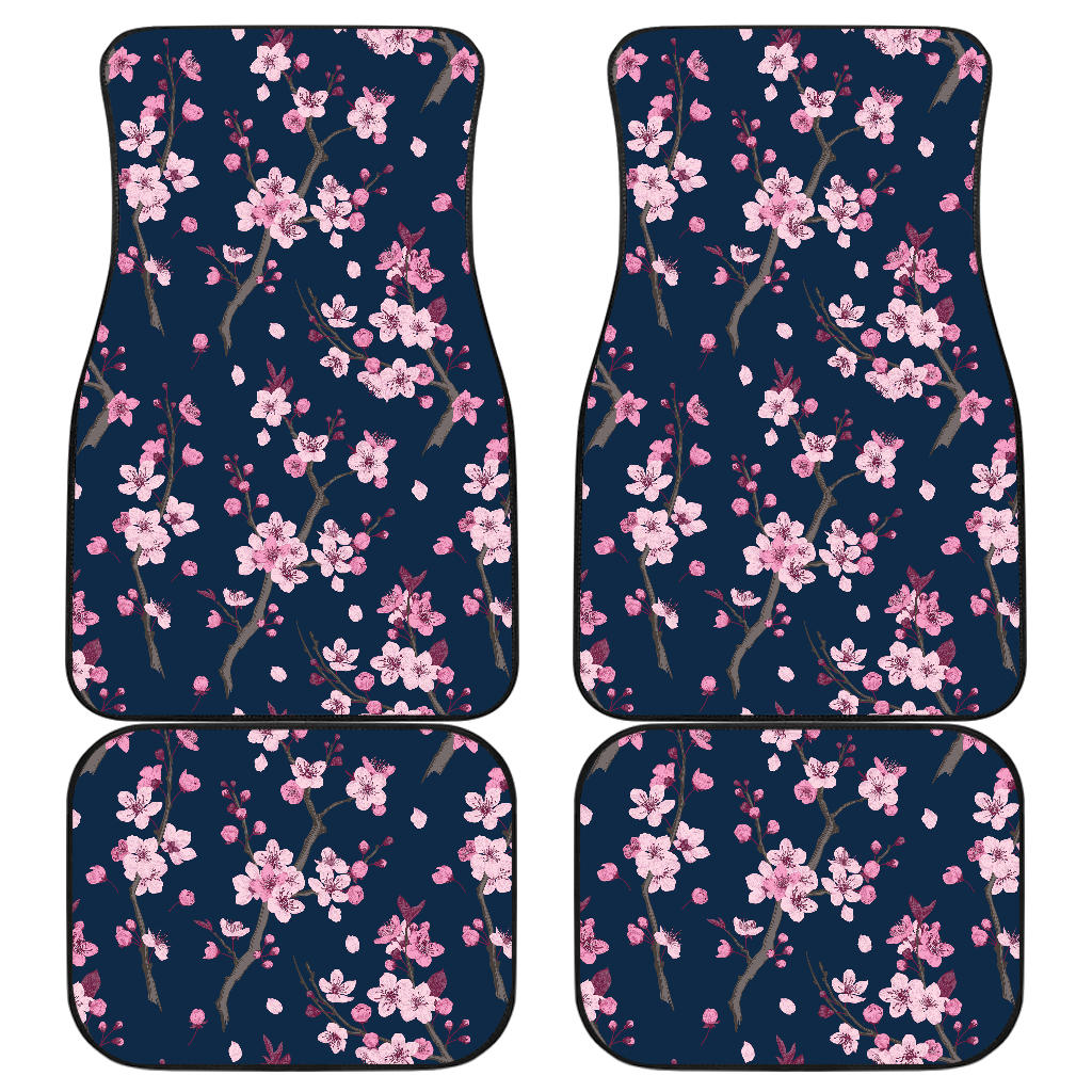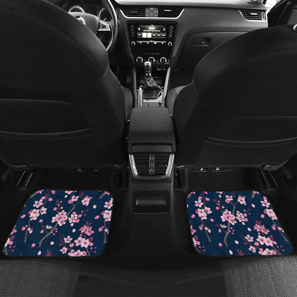 Pink sakura cherry blossom blue background Front and Back Car Mats are uniqued design and limited item. It made to order, hand printed, and sewn with love in our factory.