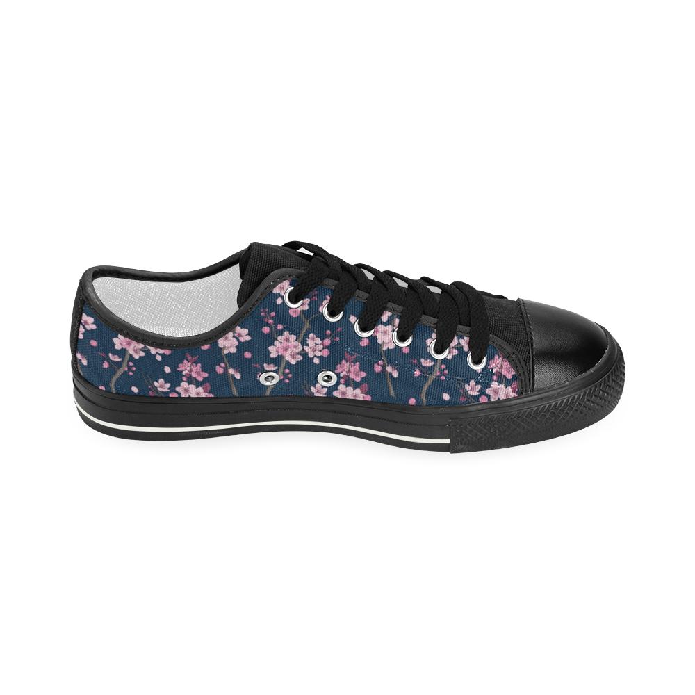 Pink sakura cherry blossom blue background Kids' Boys' Girls' Low Top Canvas Shoes Black
