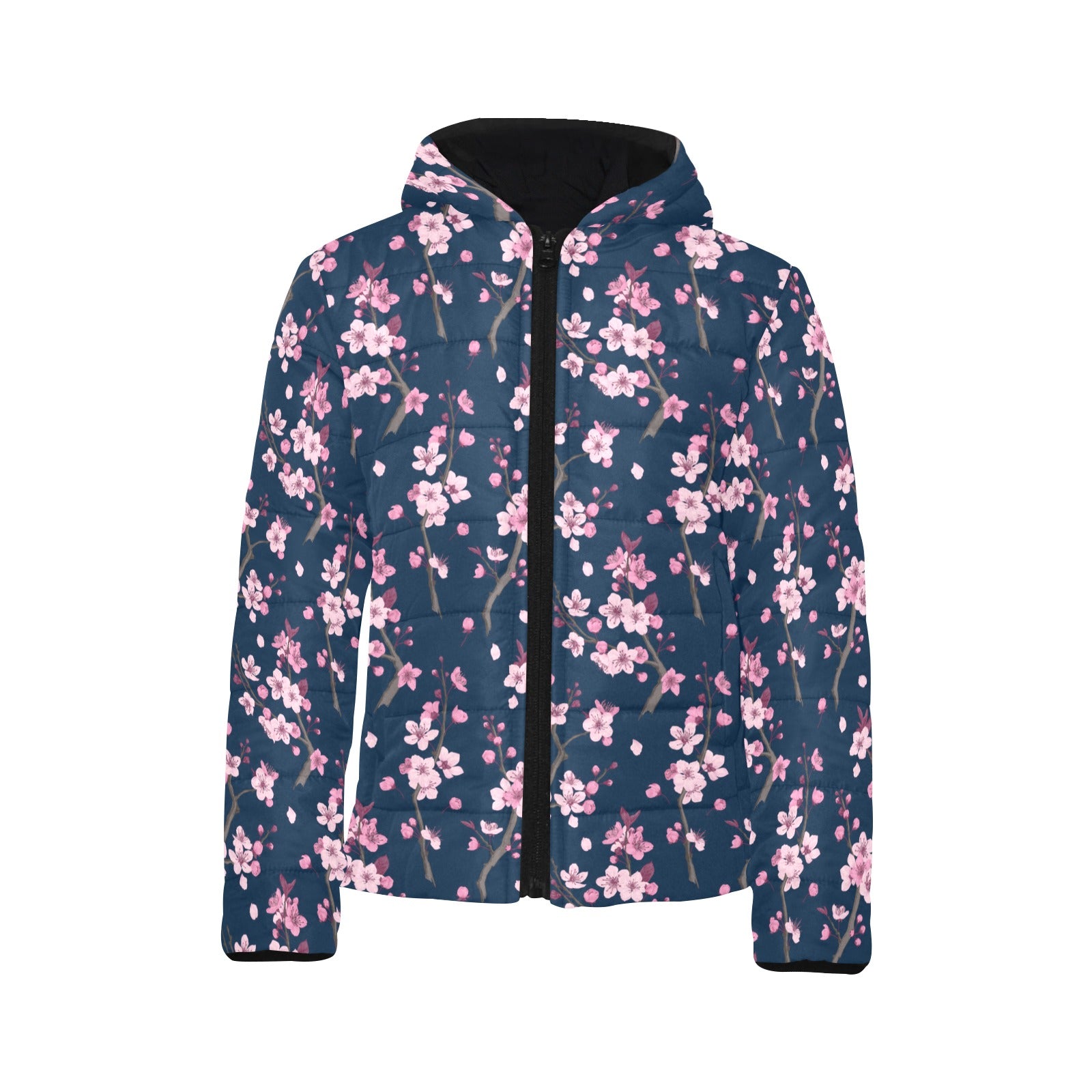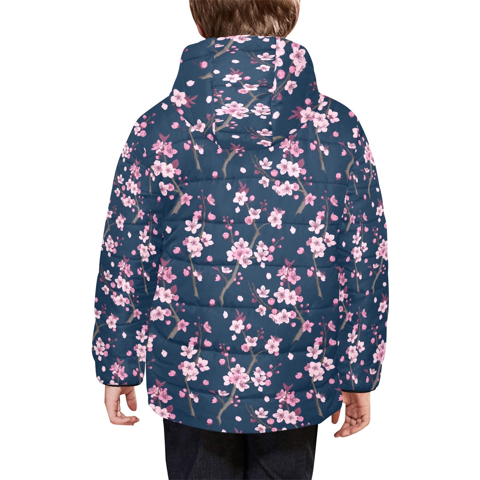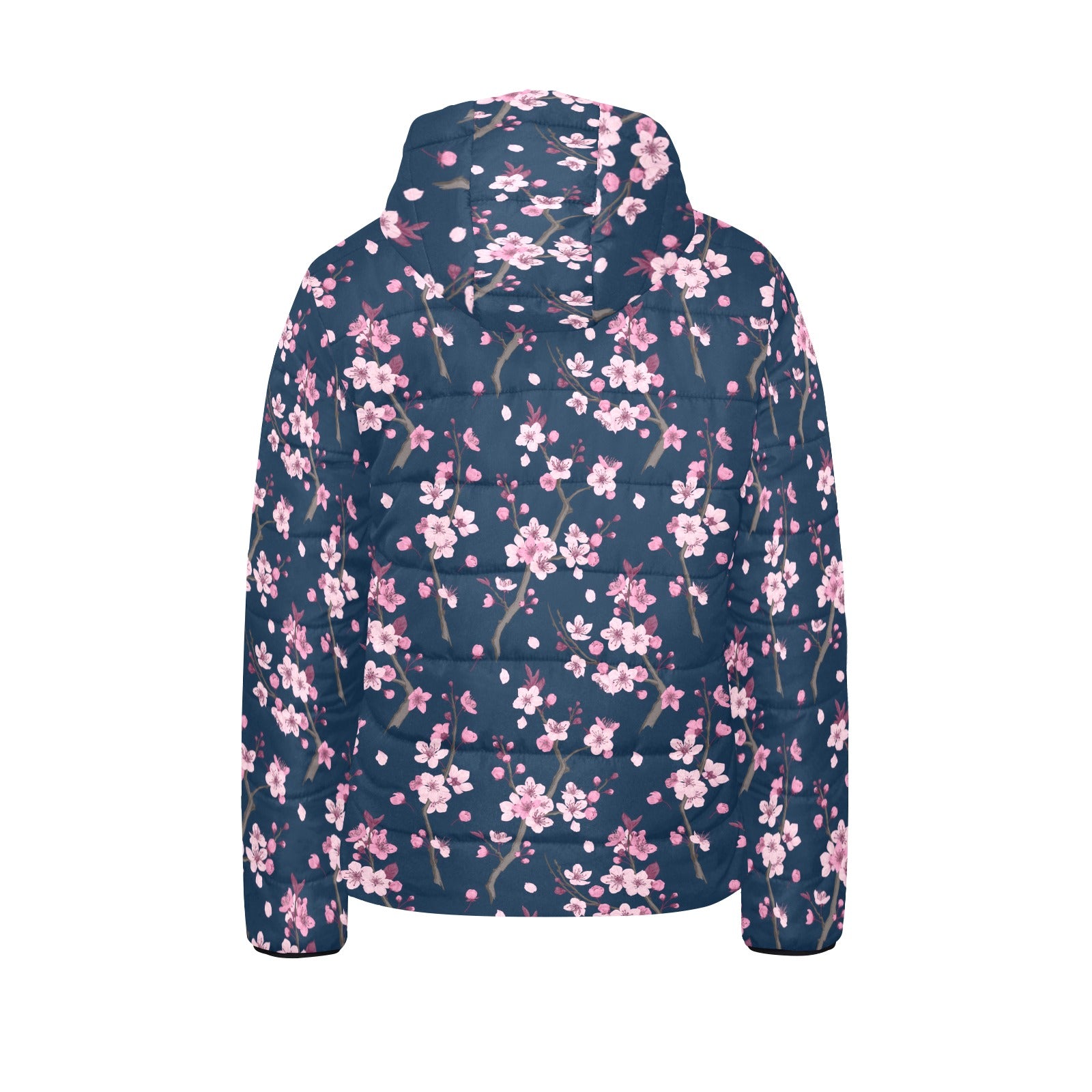 Pink sakura cherry blossom blue background Kids' Boys' Girls' Padded Hooded Jacket