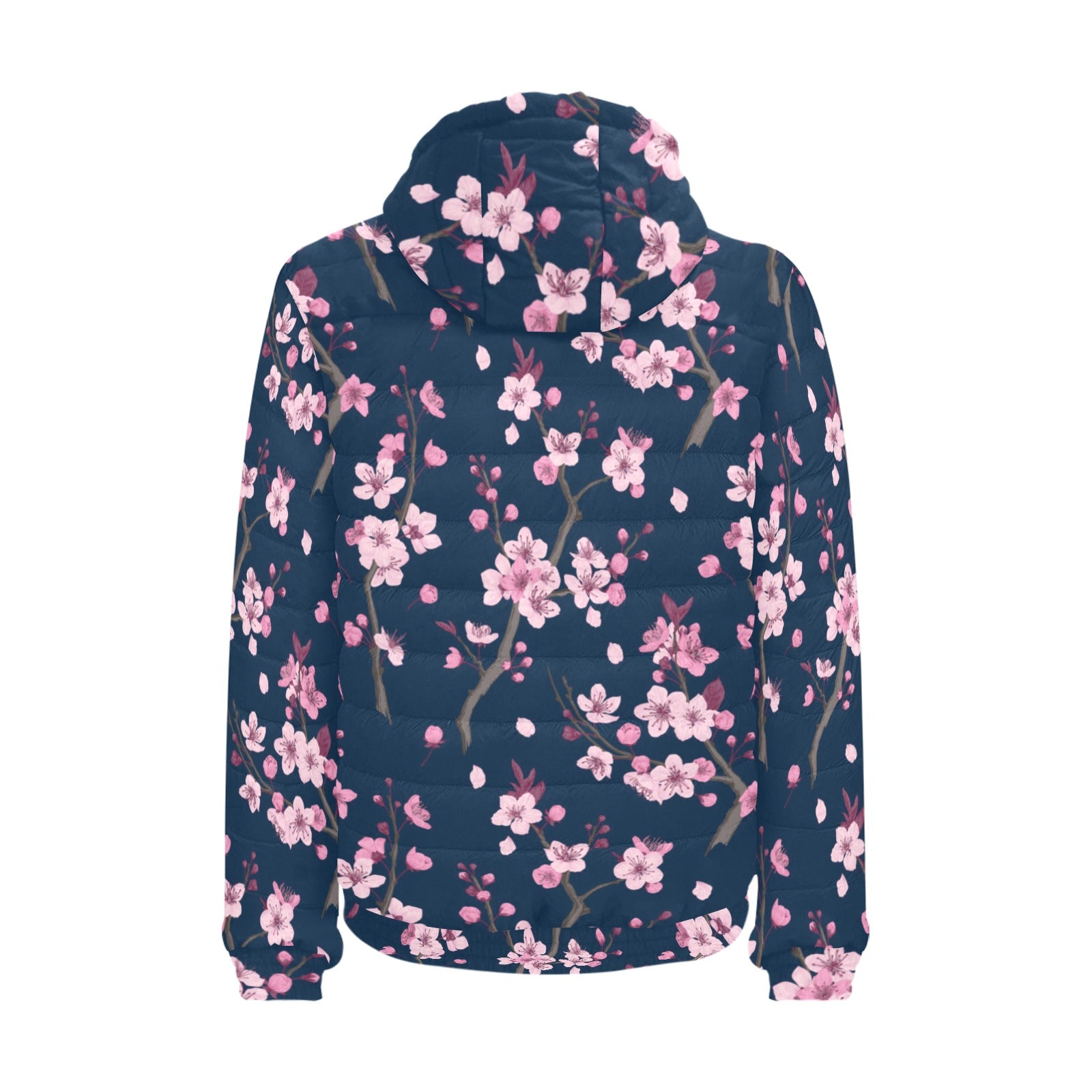 Pink sakura cherry blossom blue background Men's Padded Hooded Jacket
