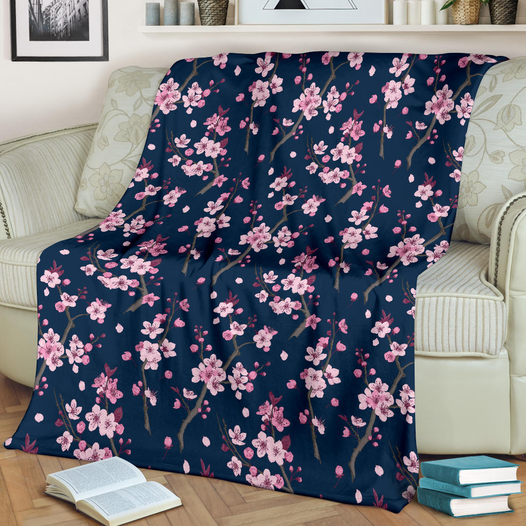 Pink sakura cherry blossom blue background Premium Blanket is a uniqued design and limited item. It made to order, hand printed, and sewn with love in our factory.