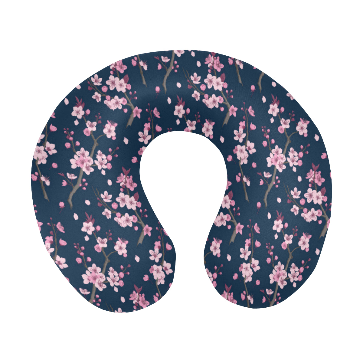 Pink sakura cherry blossom blue background U-Shaped Travel Neck Pillow