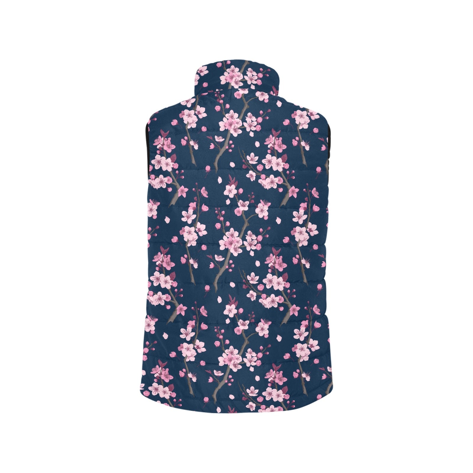 Pink sakura cherry blossom blue background Women's Padded Vest