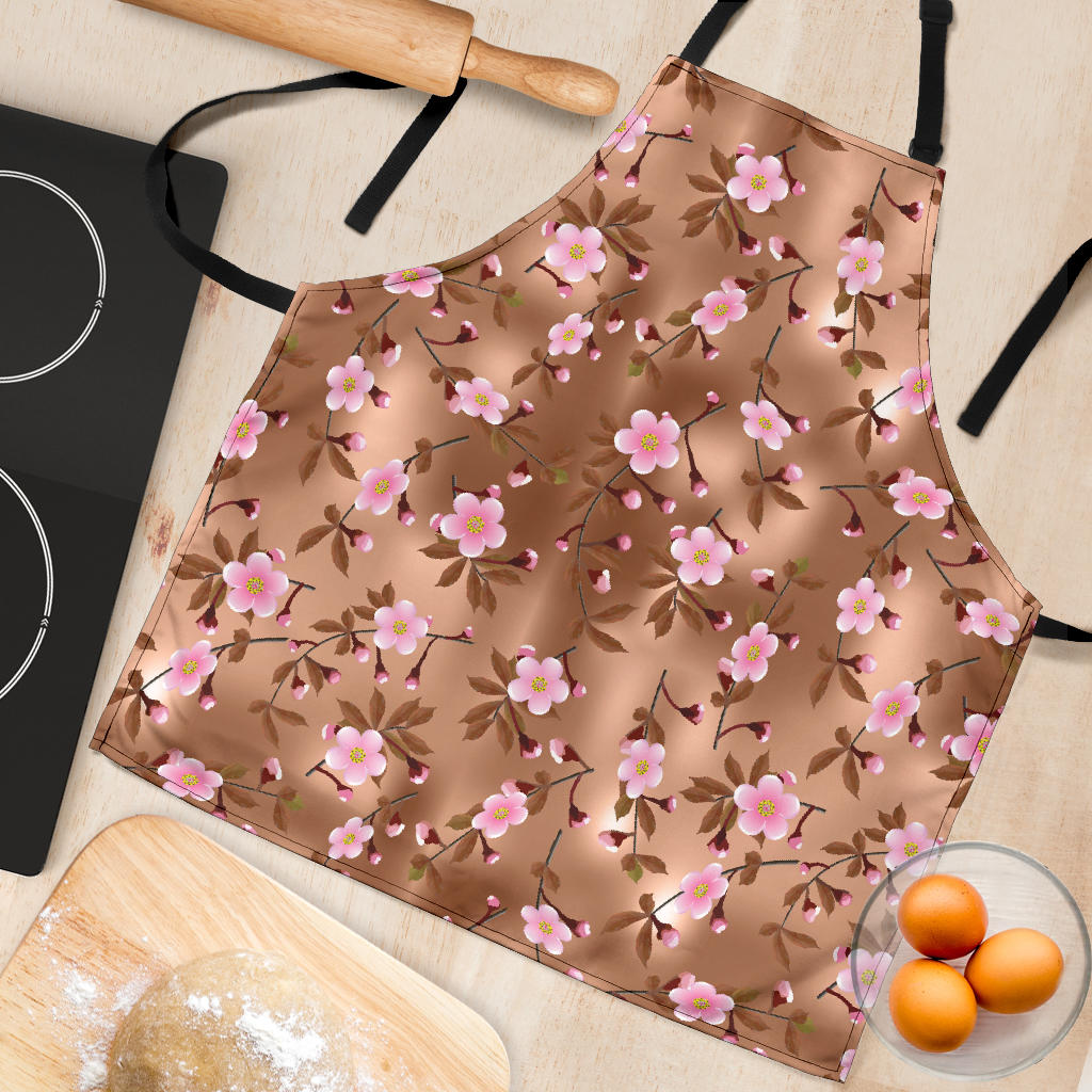Pink Sakura Cherry Blossom Drak Brown Background Adjustable Apron