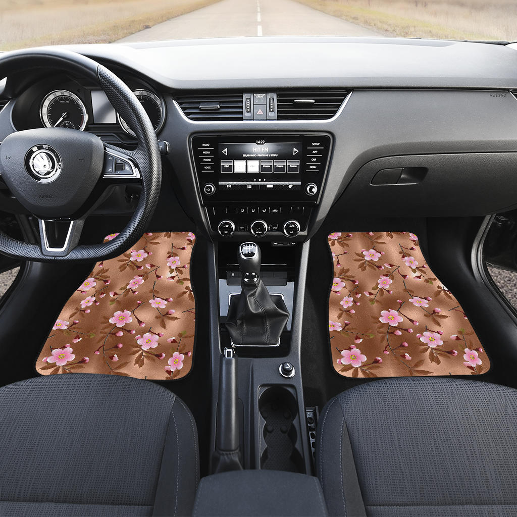 Pink sakura cherry blossom drak brown background Front and Back Car Mats are uniqued design and limited item. It made to order, hand printed, and sewn with love in our factory.
