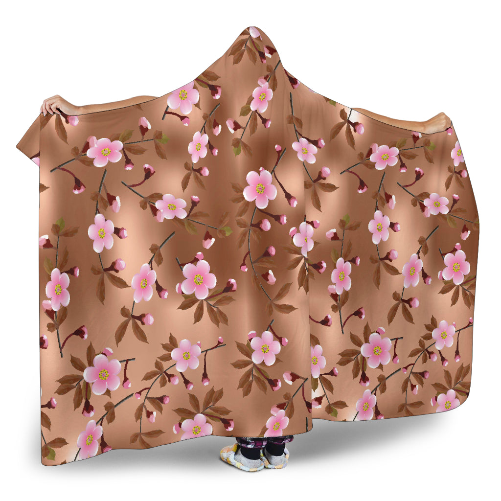 Pink sakura cherry blossom drak brown background Hooded Blanket are custom-made-to-order and handcrafted to the highest quality standards.