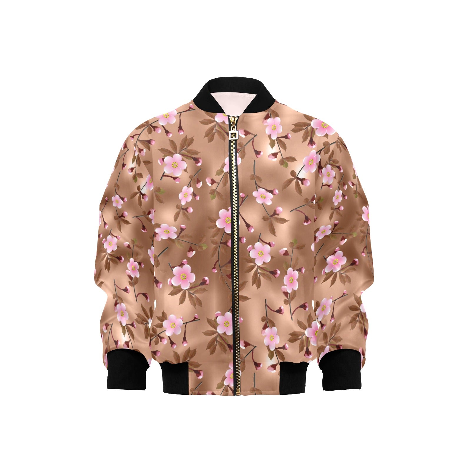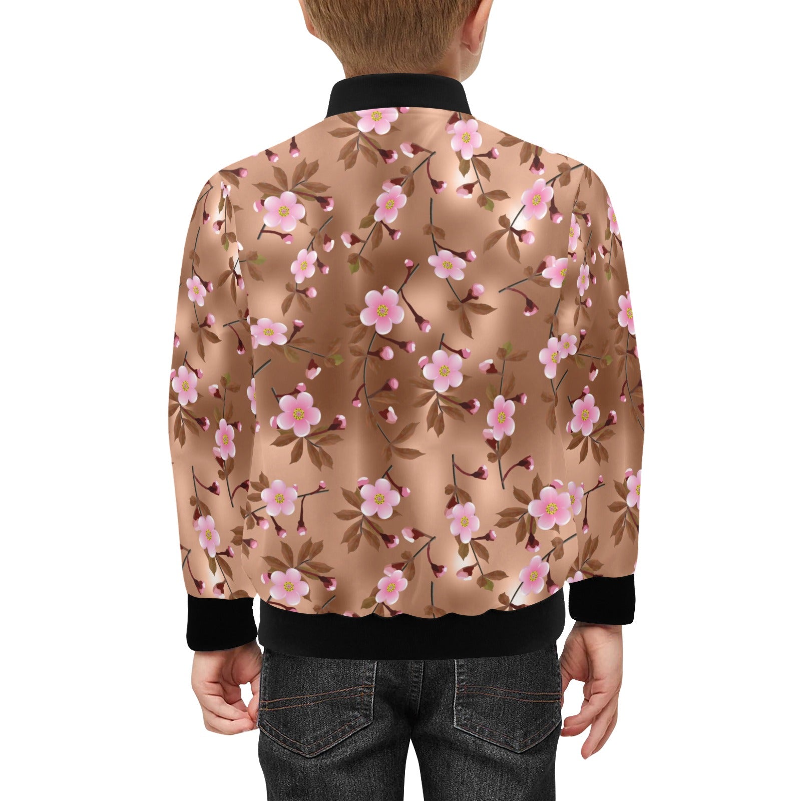 Pink sakura cherry blossom drak brown background Kids' Boys' Girls' Bomber Jacket