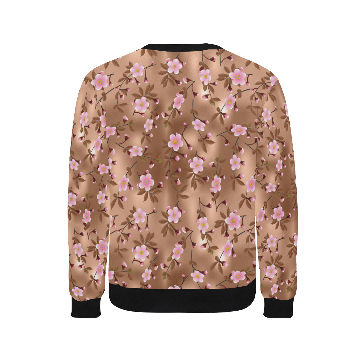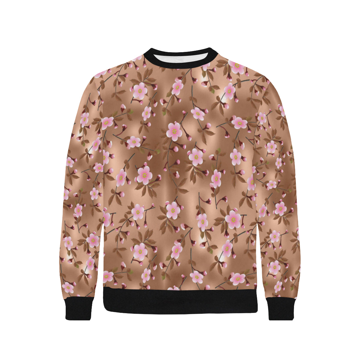 Pink sakura cherry blossom drak brown background Men's Crew Neck Sweatshirt