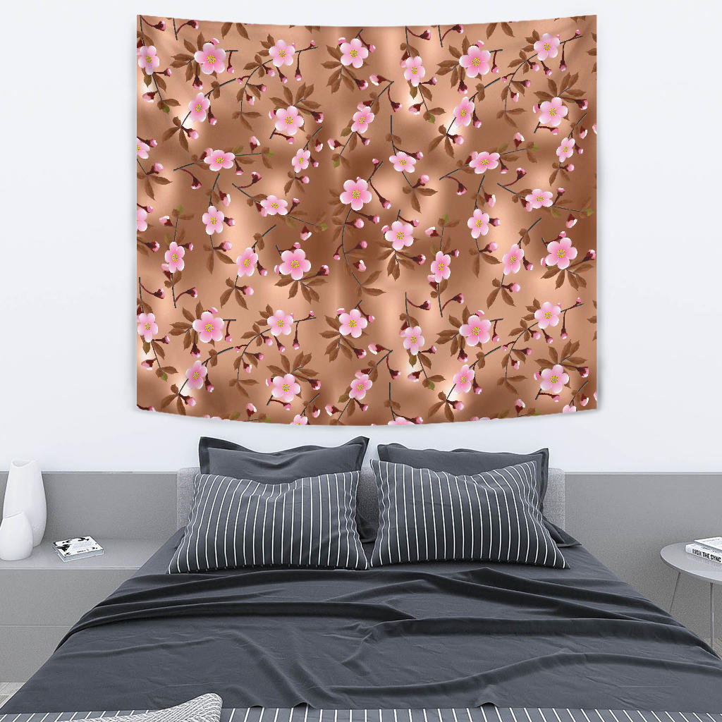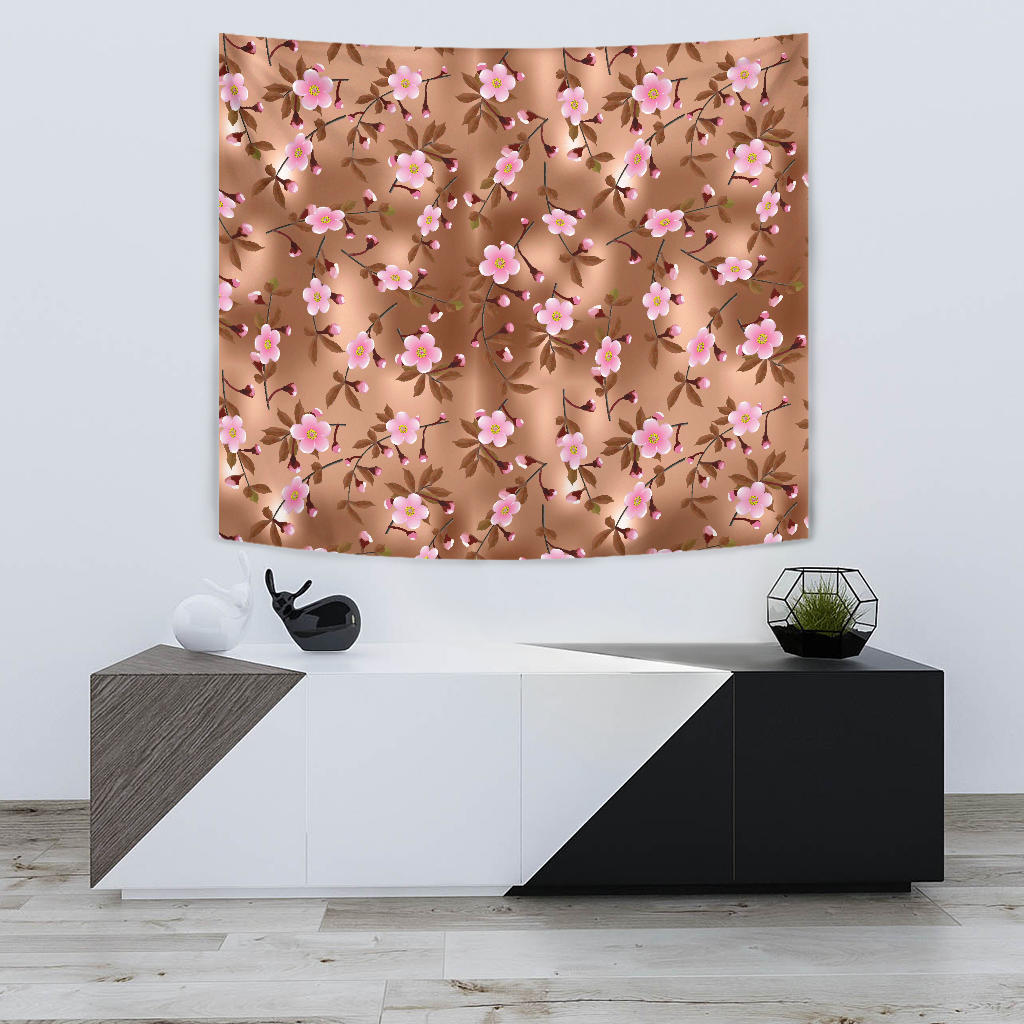 Pink sakura cherry blossom drak brown background Tapestry is a uniqued design and limited item. It made to order, hand printed, and sewn with love in our factory.