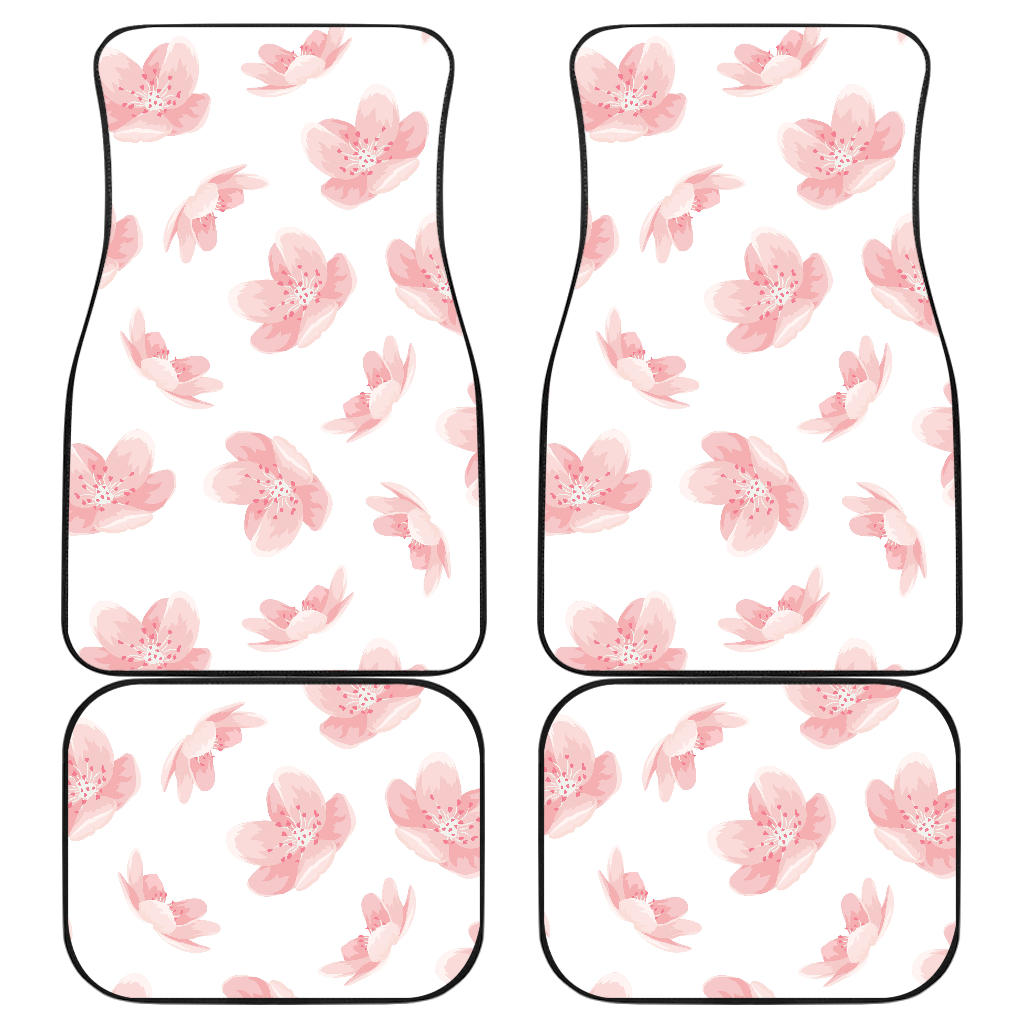 Pink Sakura Cherry Blossom Pattern Front And Back Car Mats