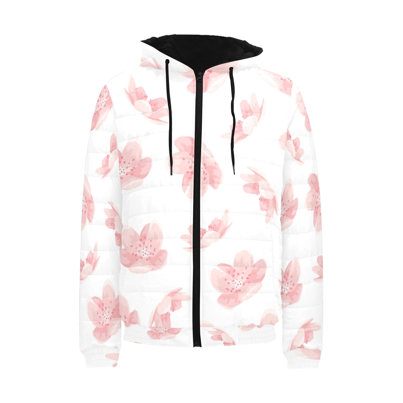 Pink sakura cherry blossom pattern Men's Padded Hooded Jacket