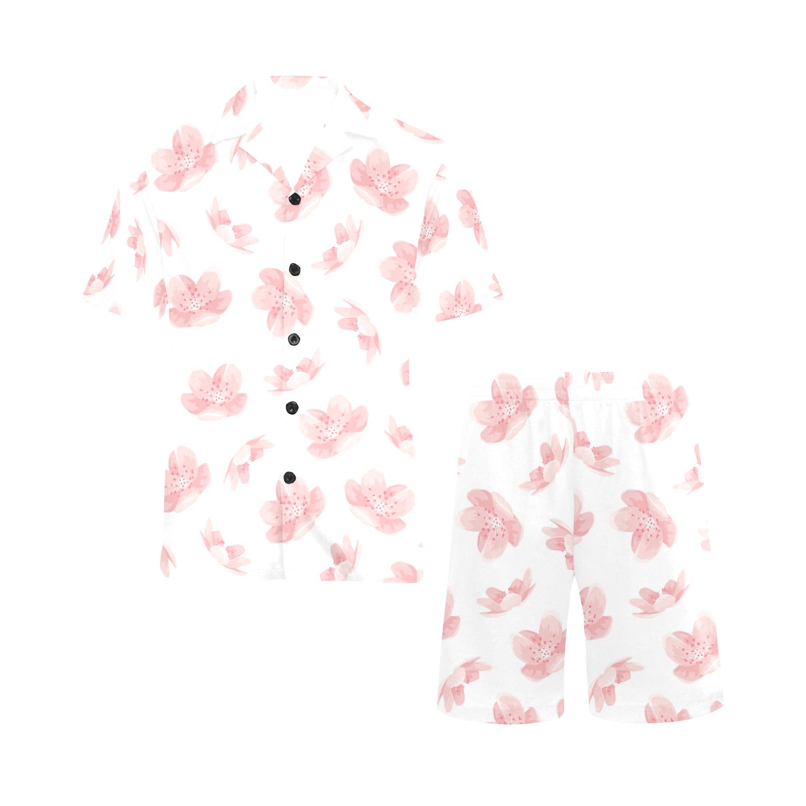 Pink sakura cherry blossom pattern Men's V-Neck Short Pajama Set