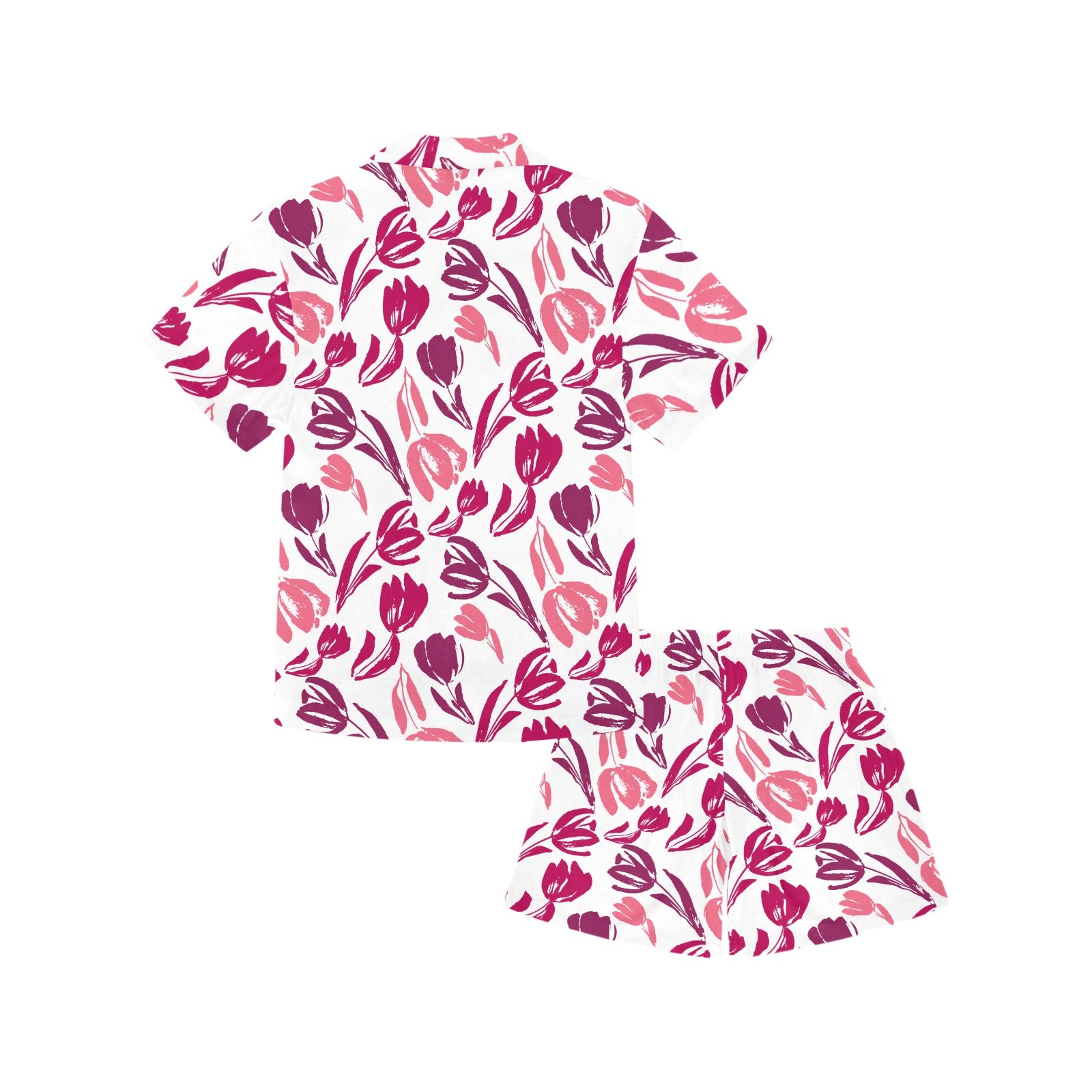 pink sketch tulip pattern Kids' Boys' Girls' V-Neck Short Pajama Set