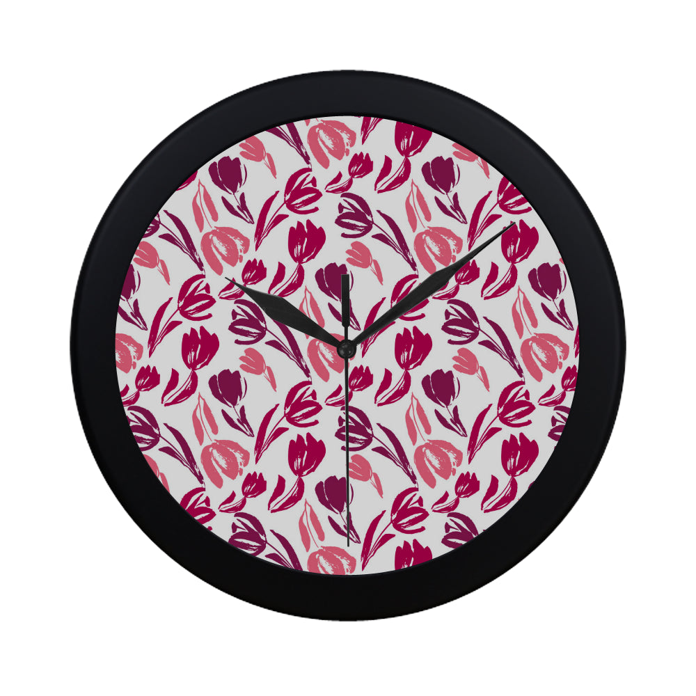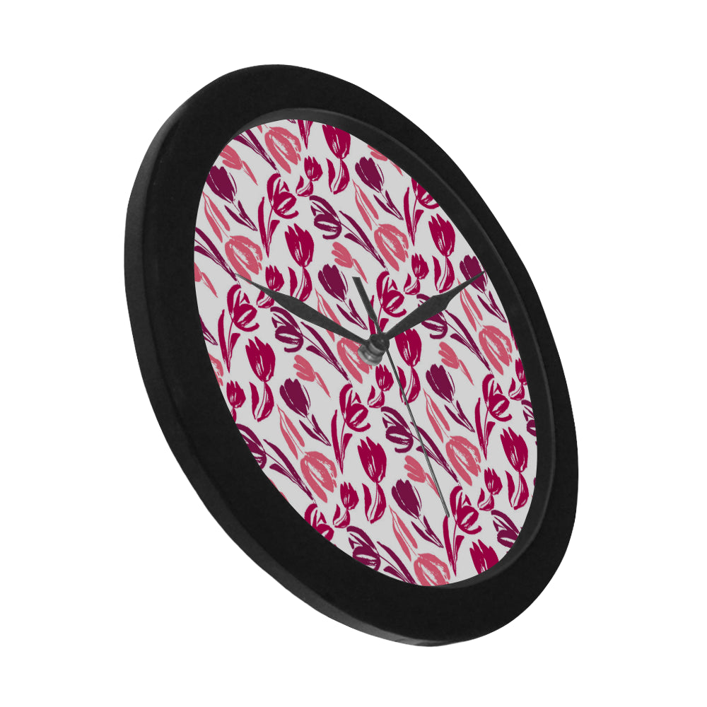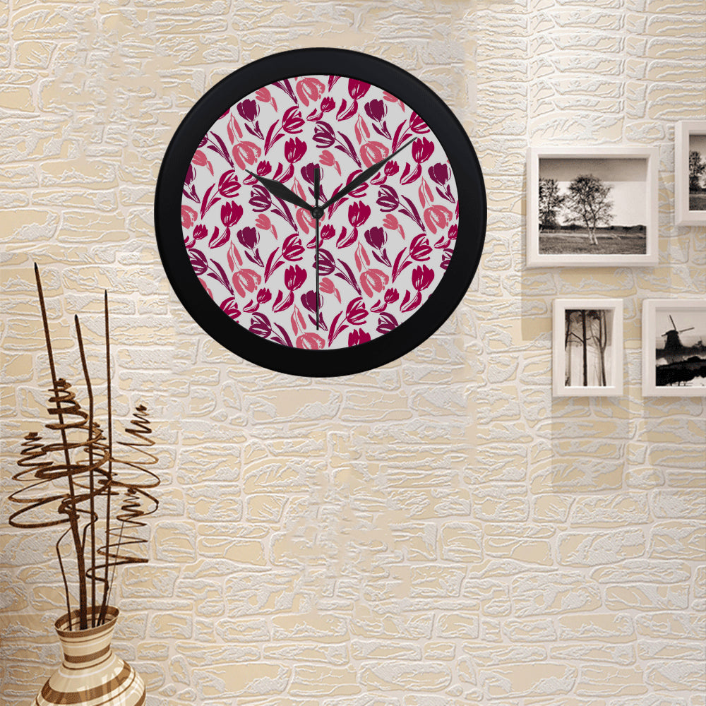 pink sketch tulip pattern Elegant Black Wall Clock is a uniqued design and limited item. It made to order, hand printed, and sewn with love in our factory.