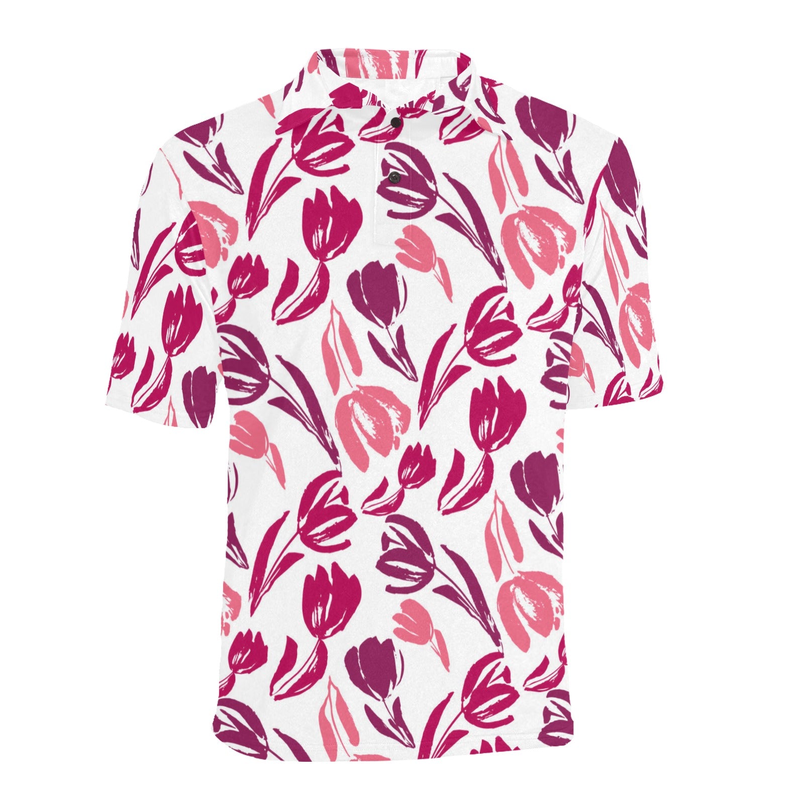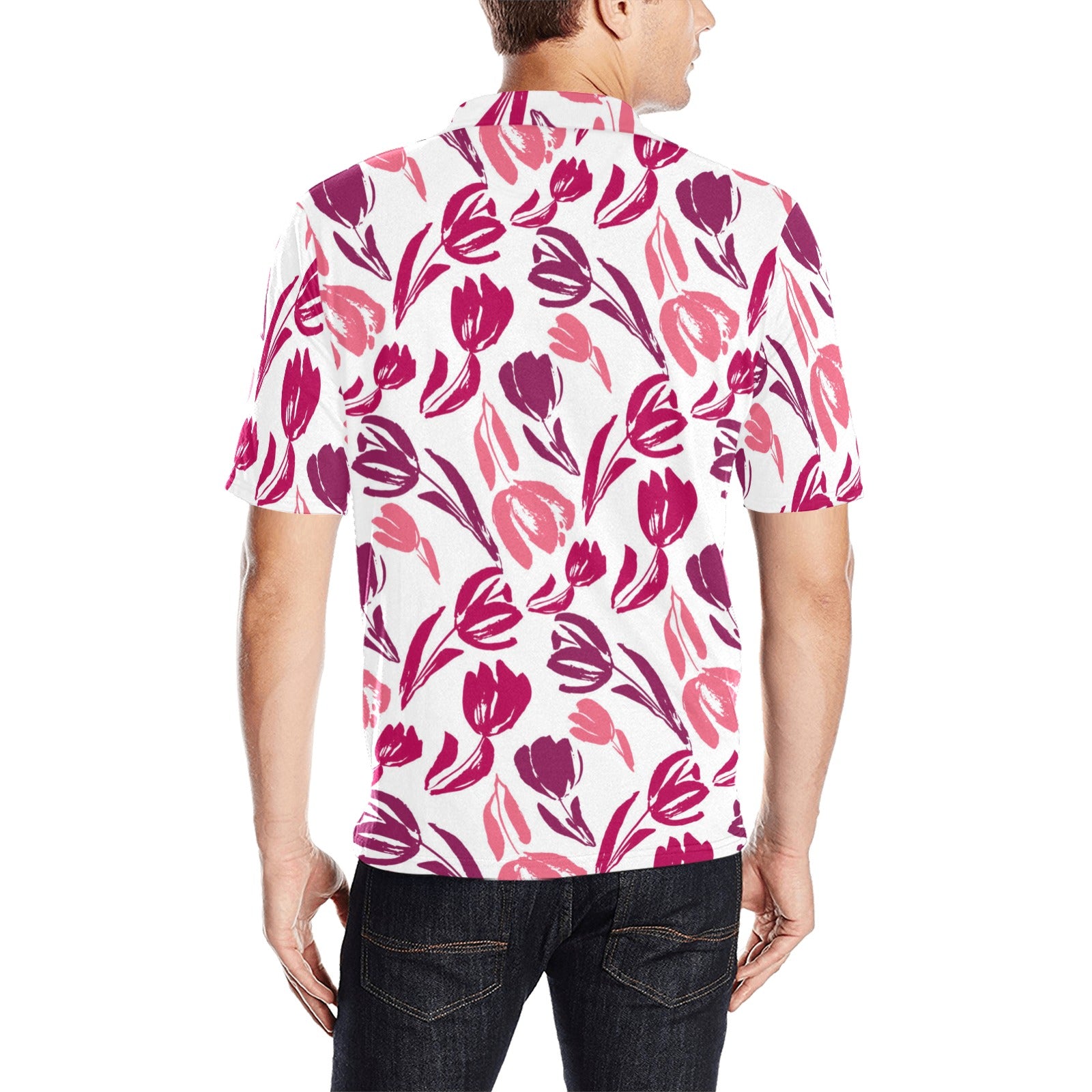 pink sketch tulip pattern Men's All Over Print Polo Shirt