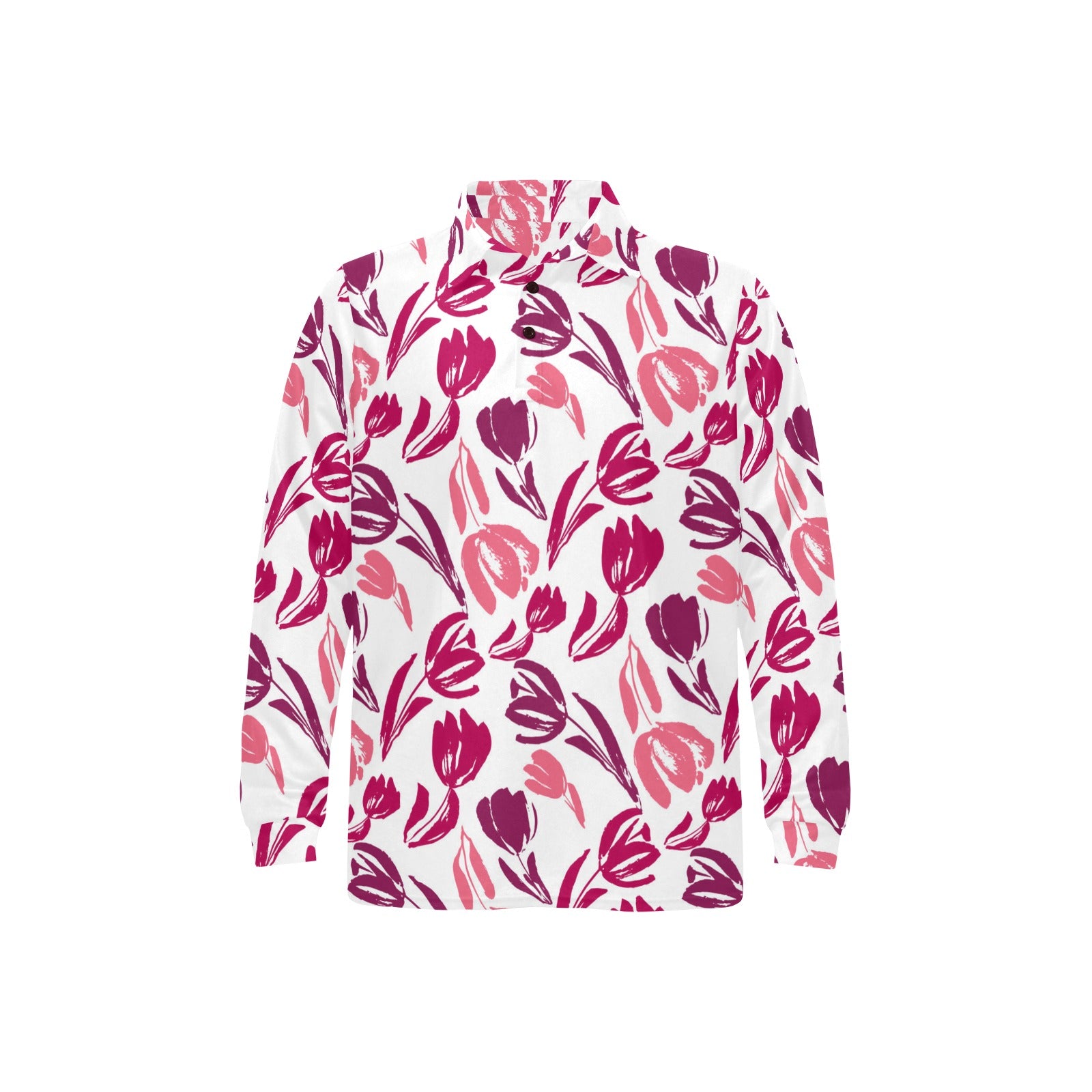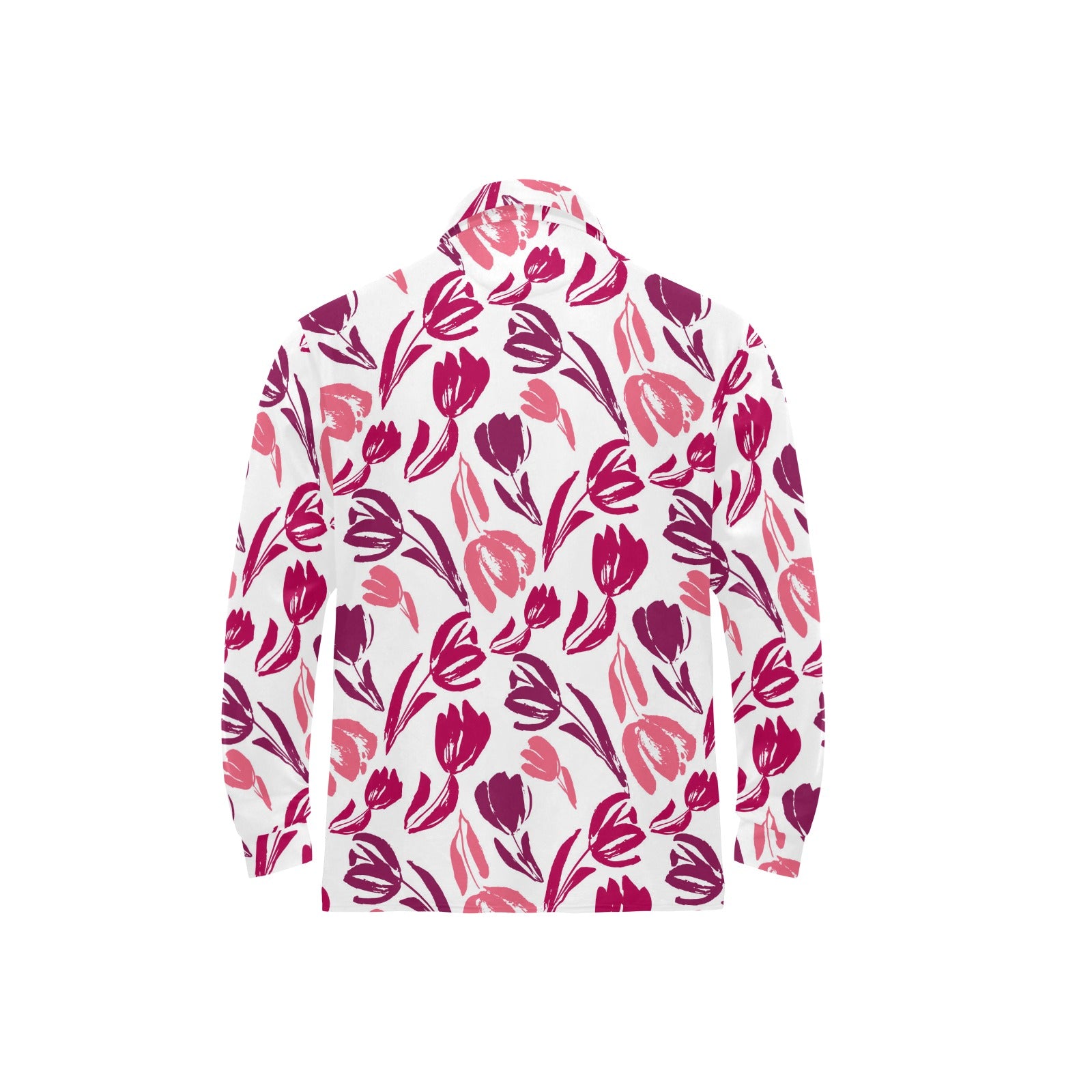pink sketch tulip pattern Men's Long Sleeve Polo Shirt