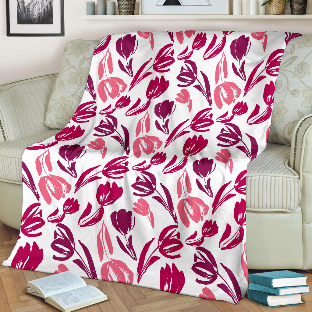 pink sketch tulip pattern Premium Blanket is a uniqued design and limited item. It made to order, hand printed, and sewn with love in our factory.