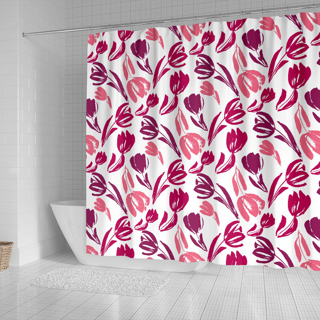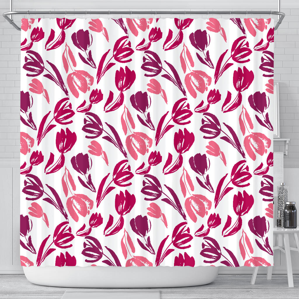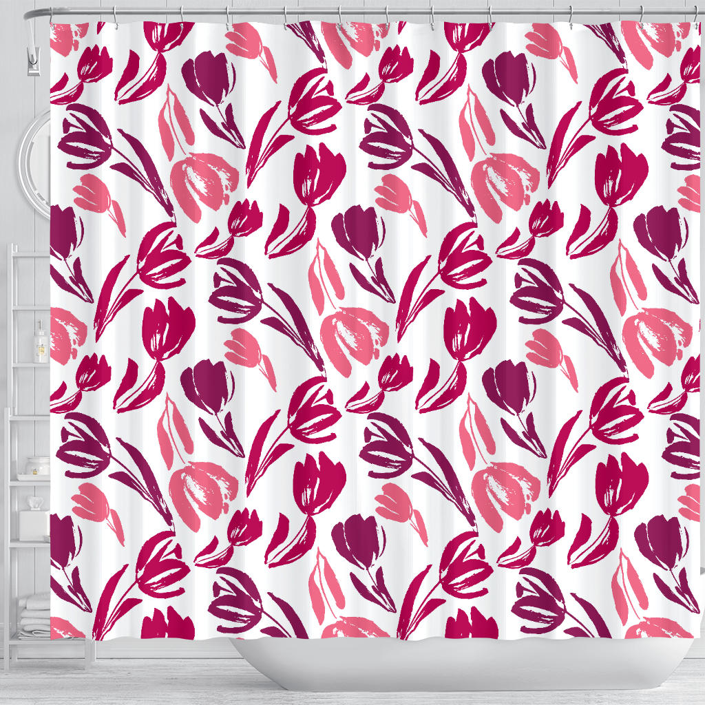 Pink Sketch Tulip Pattern Shower Curtain Fulfilled In US