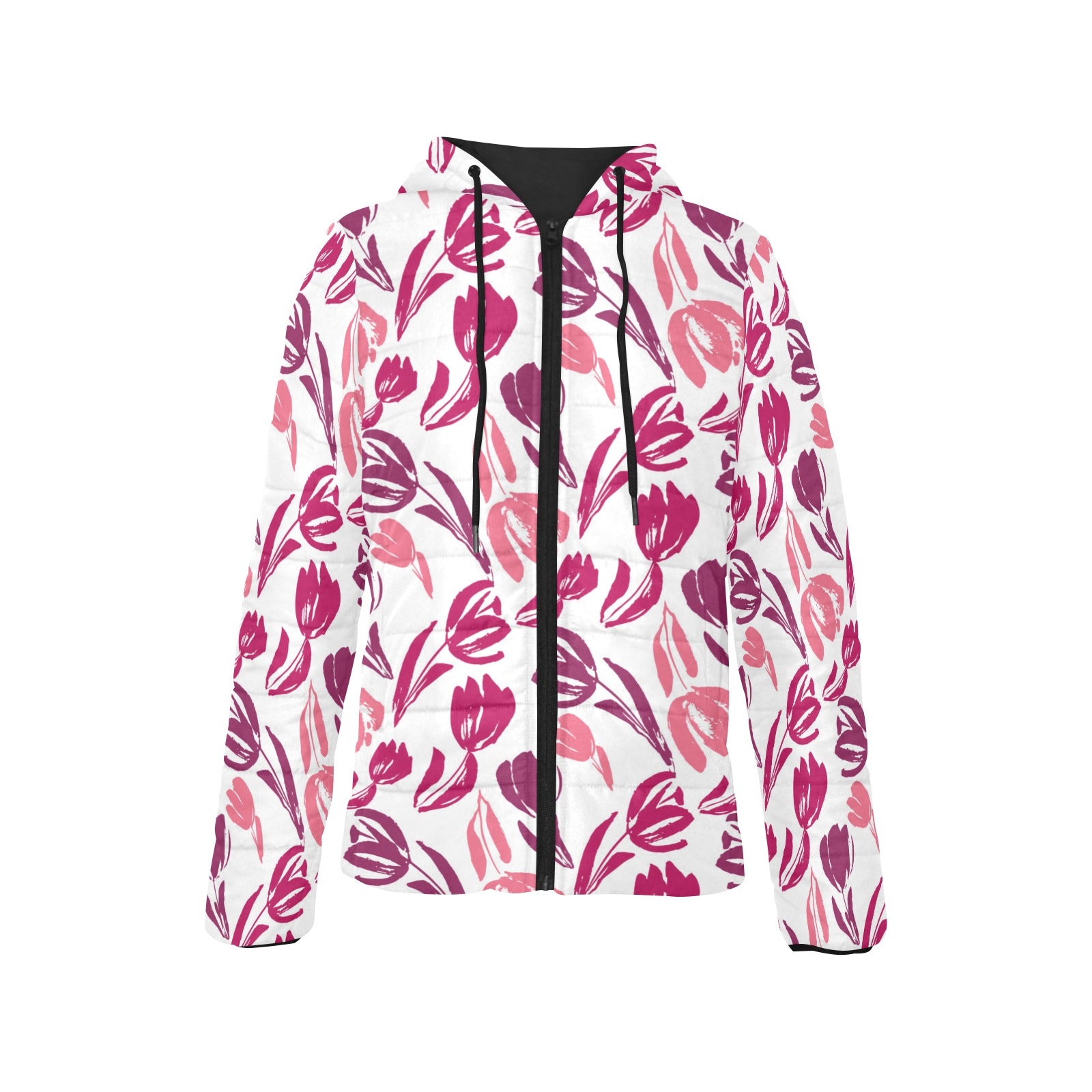 pink sketch tulip pattern Women's Padded Hooded Jacket